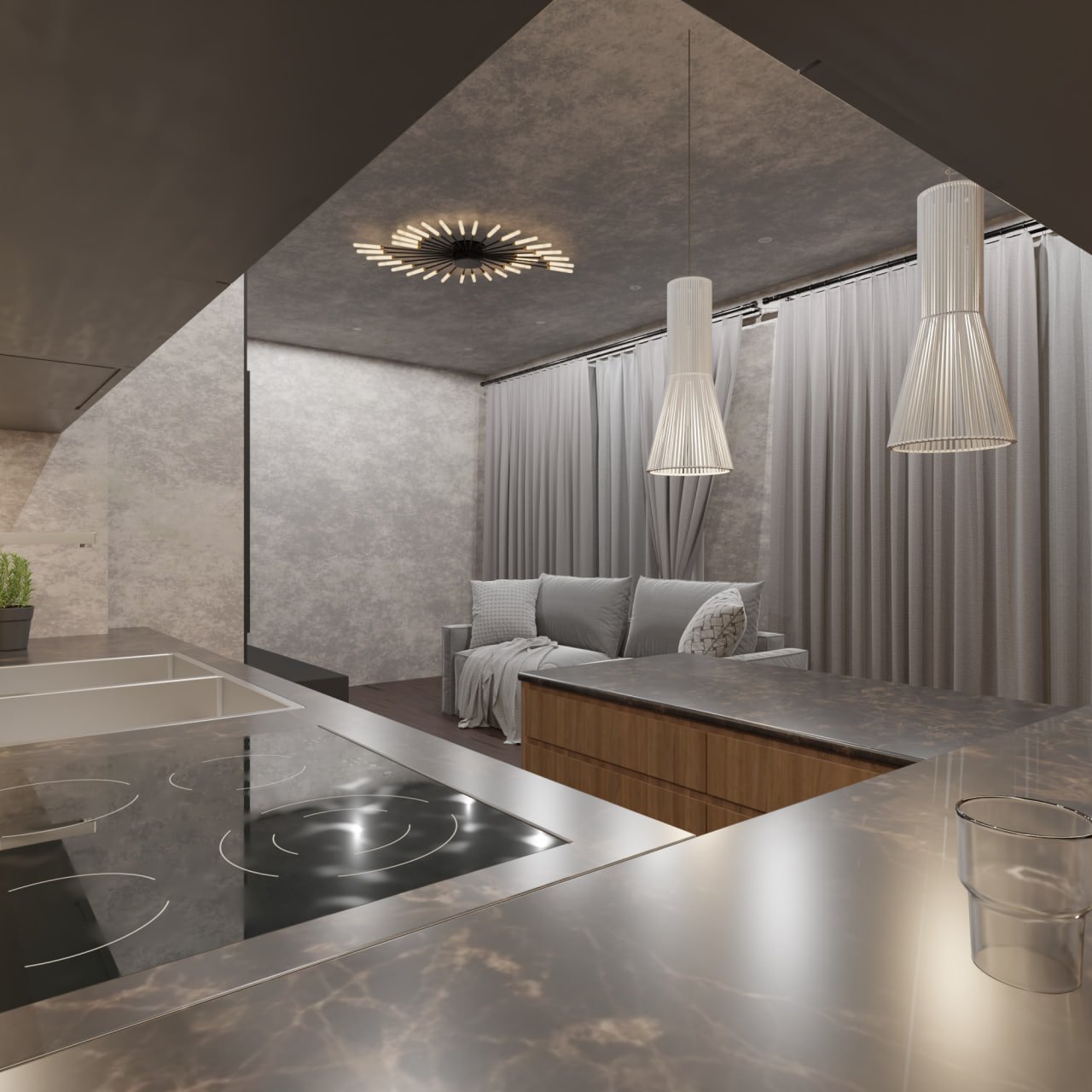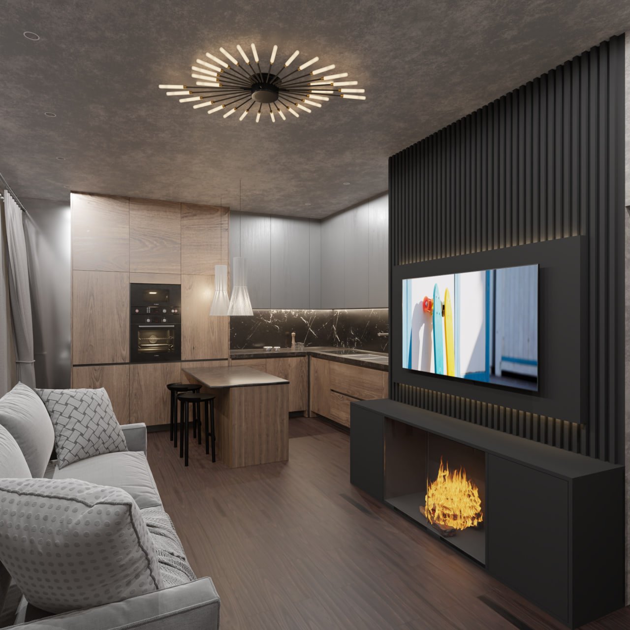 Заказчик полностью нам доверился в реализации данного проекта. Уточнили некоторые моменты по мебели, так как мы стремились расположить те детали интерьера, которые человек может позволить себе приобрести в жизни. У нас это удалось.