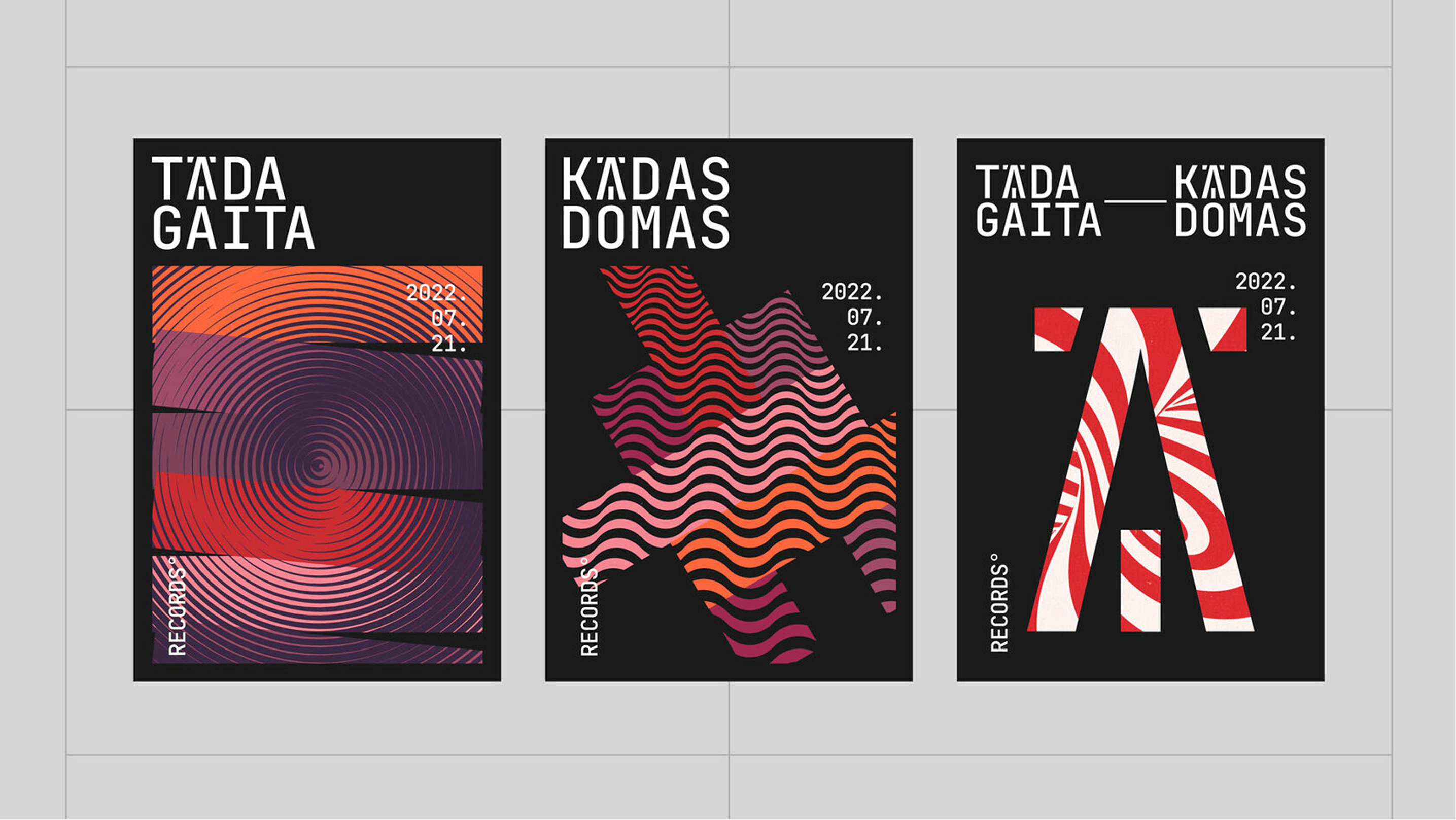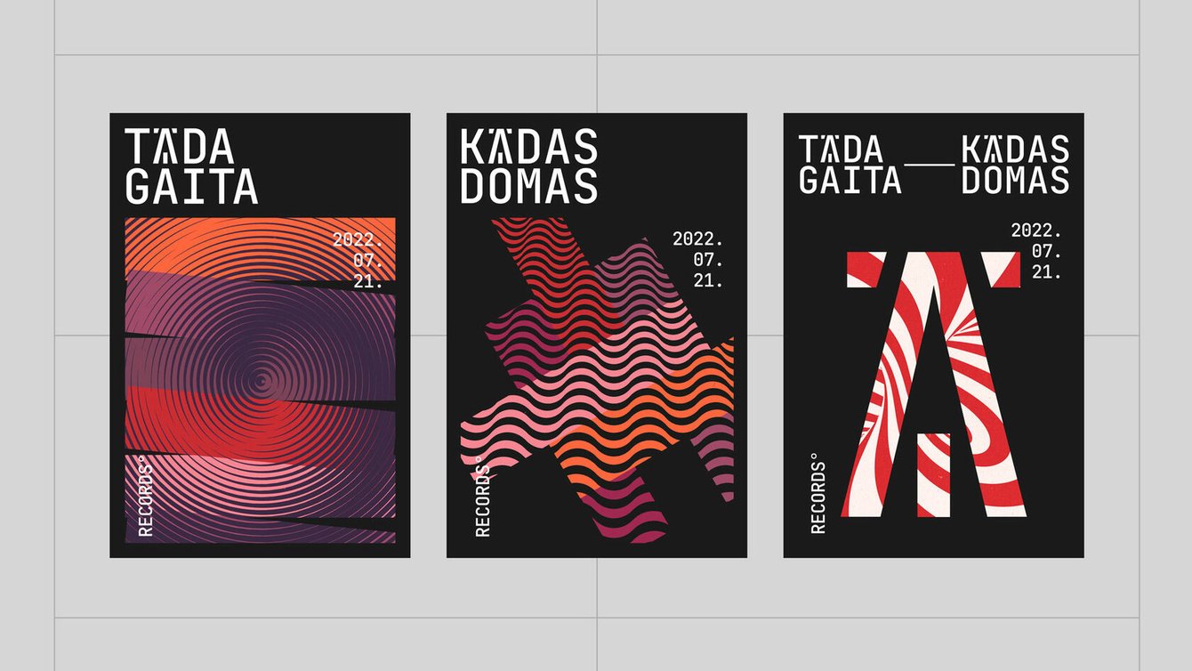 Два независимых латвийских музыкальных лейбла — это половинки одного целого. Kādas Domas специализируется на интеллектуальной, большей частью не экспериментальной музыке, Tāda Gaita — на танцевальных треках с национальным колоритом. Бюро работало над созданием логотипов лейблов.