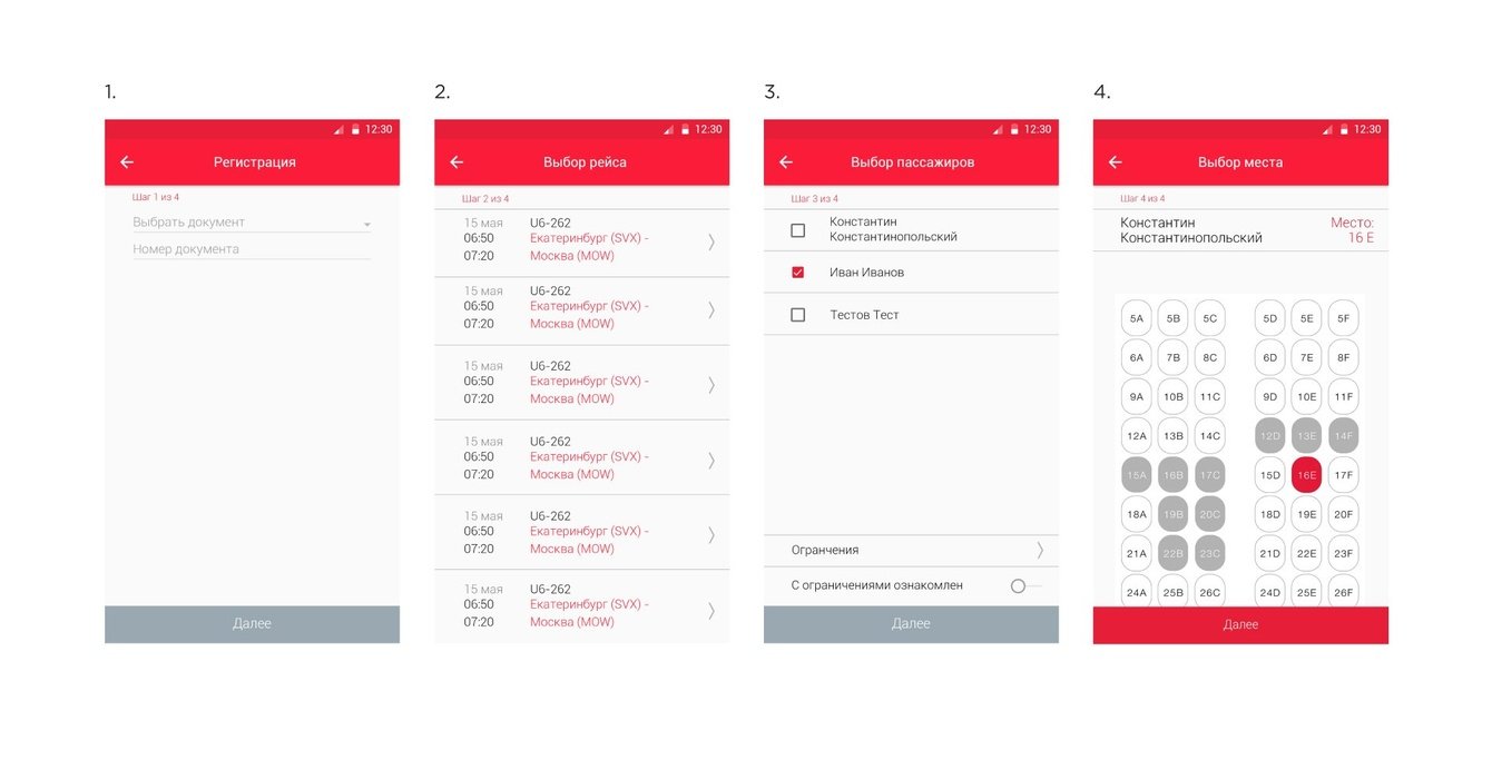 Пассажир должен иметь возможность зарегистрироваться на рейс через приложение. Наша задача состояла в том, чтобы максимально упростить этот процесс.