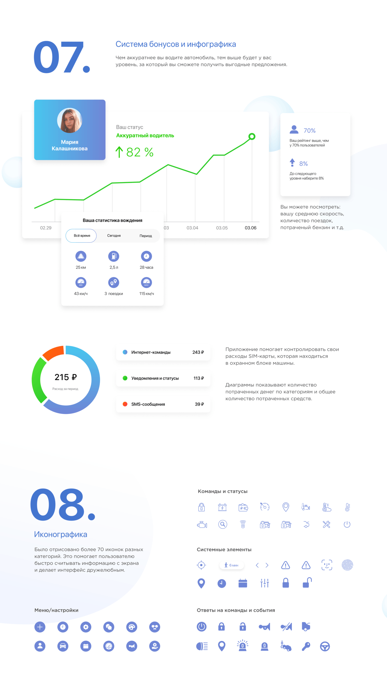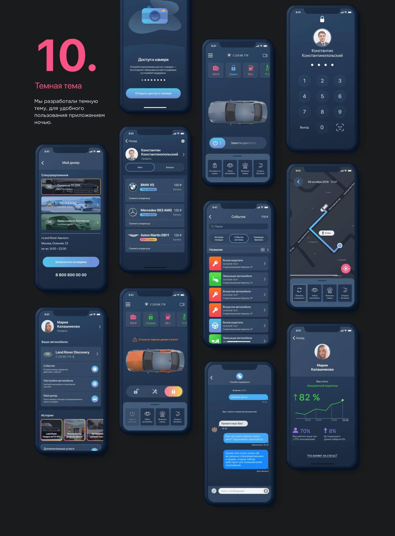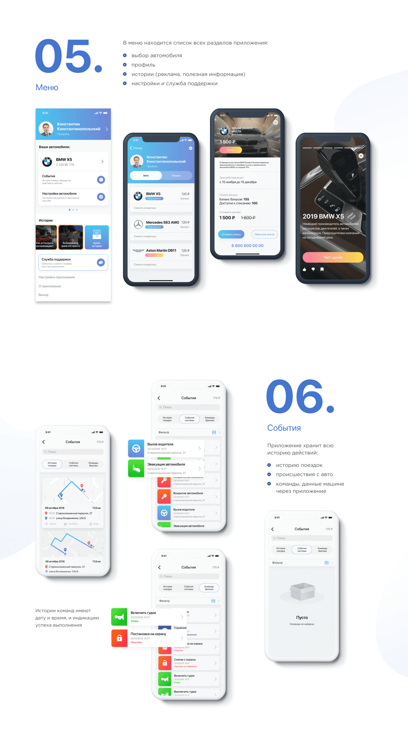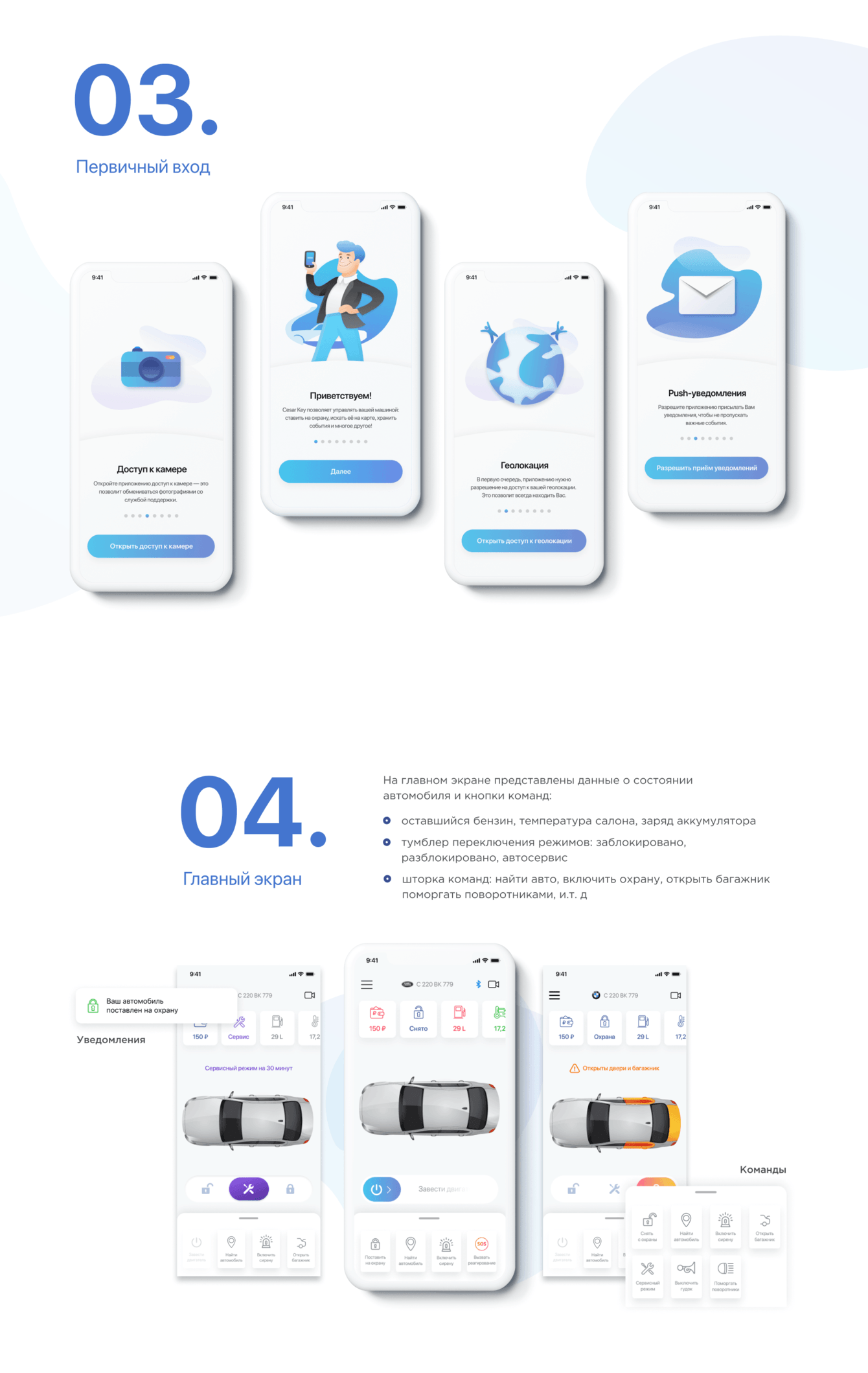 Было разработано удобное, интуитивно понятное, современное приложение, c помощью которого водитель может дистанционно управлять блокировкой авто, сохранять важные события и поездки.