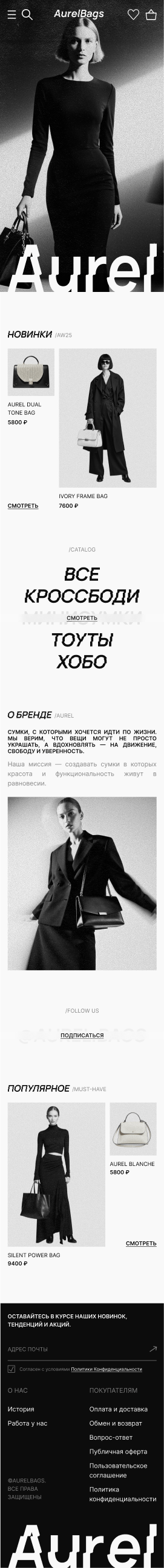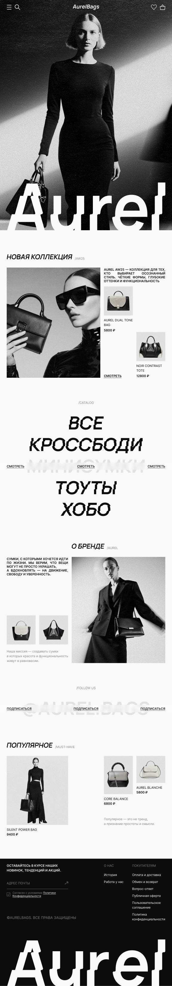 Разработан современный, стильный дизайн, подчёркивающий премиальность сумок. Удобная структура сайта: каталог → карточка товара → оформление заказа. Каждая карточка содержит описание, цену, варианты цвета/размера. Форма заказа с минимальным количеством полей для упрощения покупки.