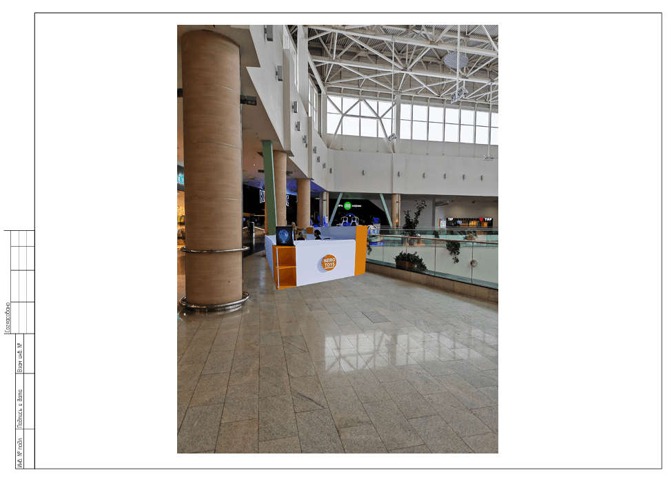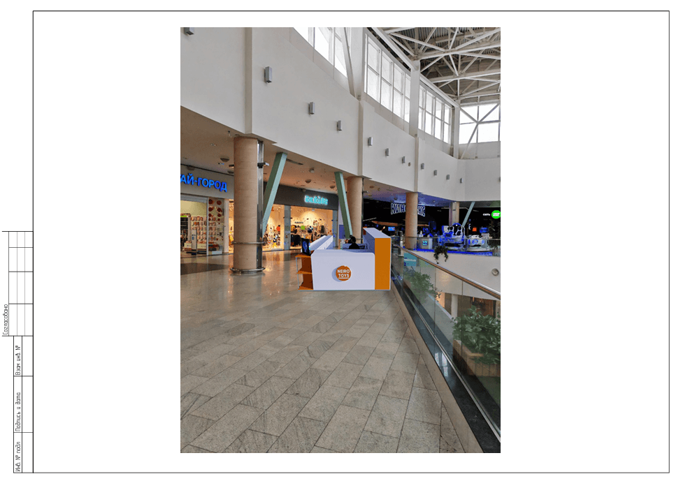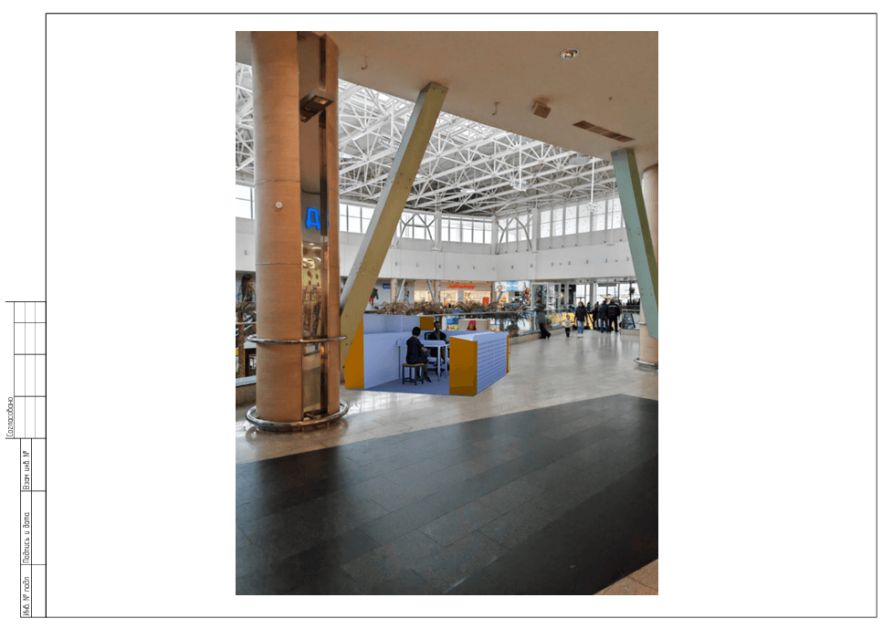 Заказчику требовался дизайнер для разработки проекта с чертежами под изготовление и визуализацию с фотопривязкой к месту торгового островка для ТРЦ.