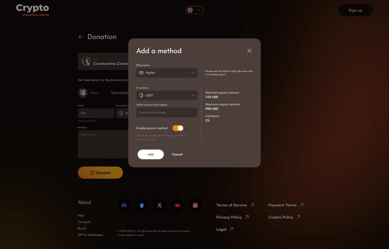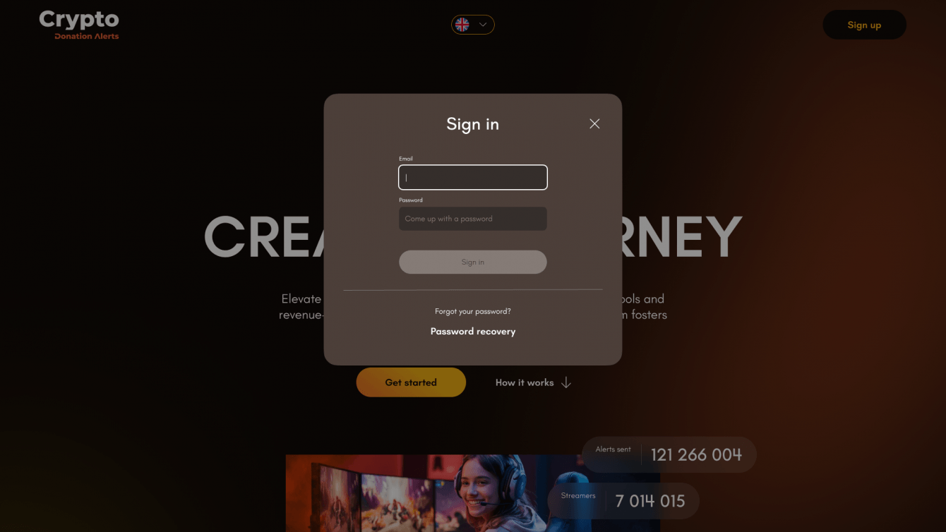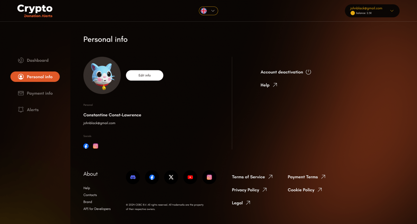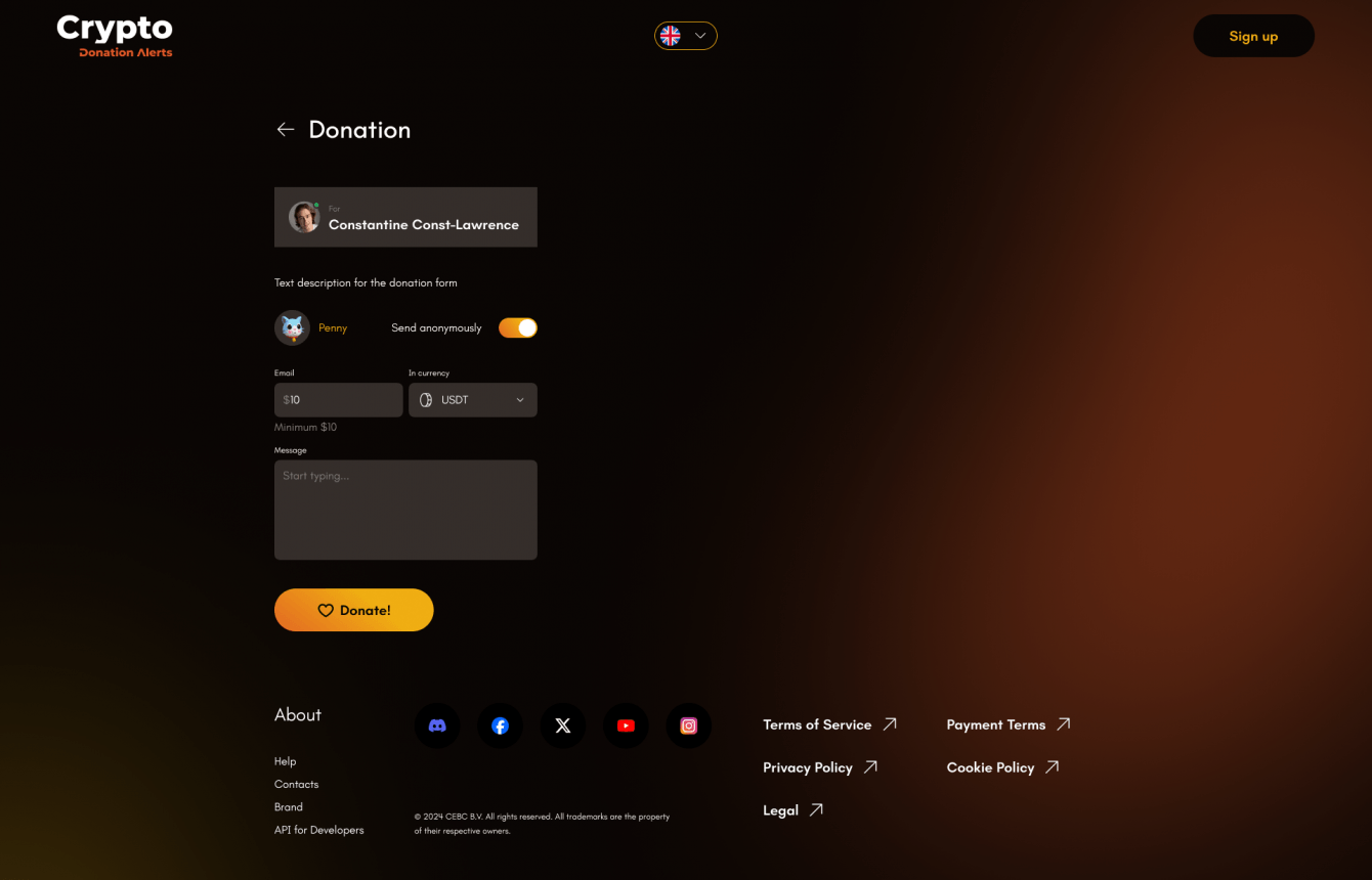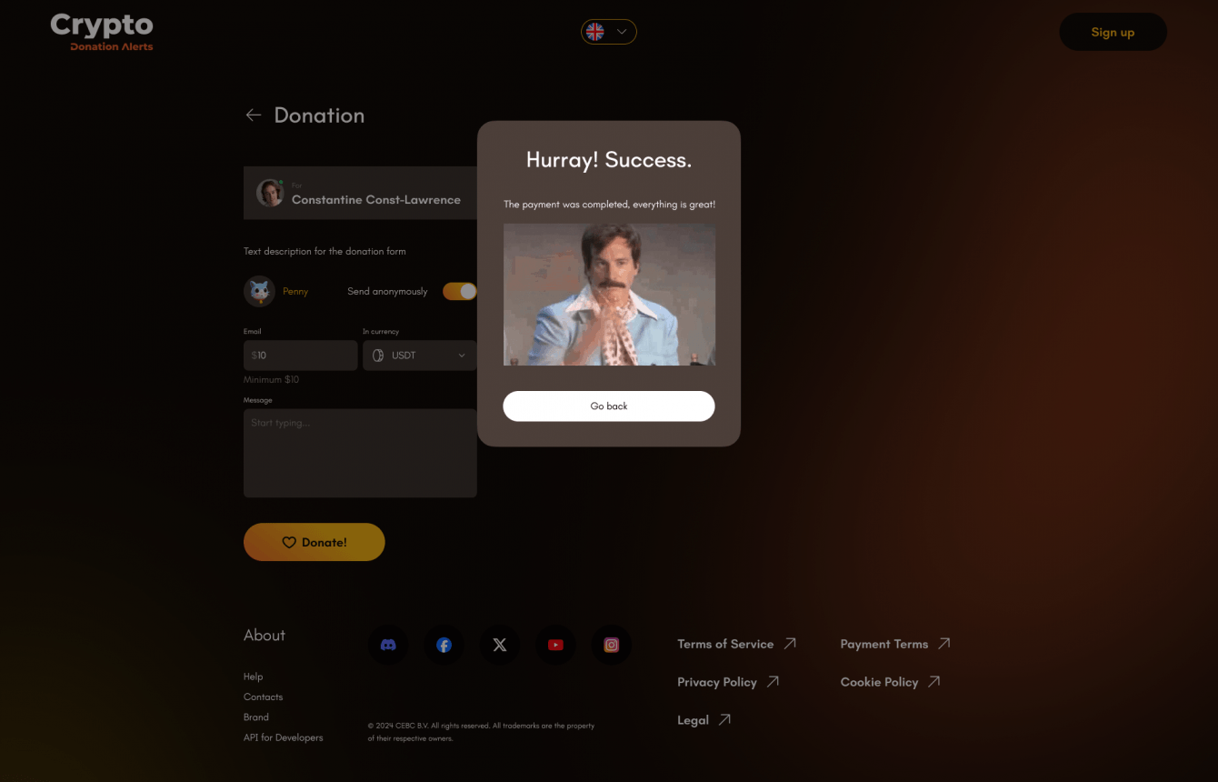 В рамках проекта была реализована дизайн часть для сервиса Крипто-донатов для стримеров.
