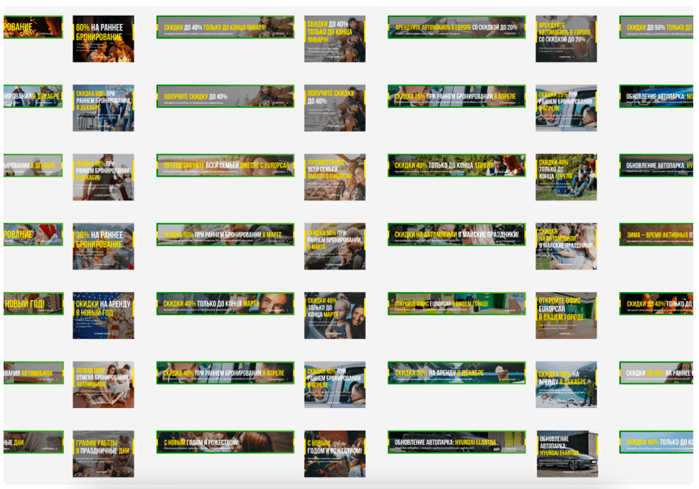 Каждый месяц мы отрисовываем более 20 баннеров, которые сообщают о новых акциях, услугах и новостях компании. За время работы с Europcar создали более 300 рекламных баннеров.