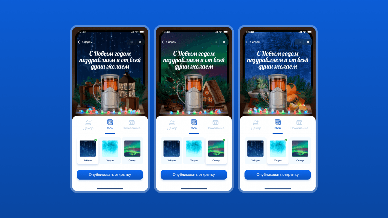- «Подстаканник дружбы» — генератор новогодних открыток. В нем можно создать поздравительную карточку с собственным дизайном: на картинке можно поменять декорации и вид за окном, а ещё выбрать один из пяти текстов. Через сниппет готовой открыткой можно поделиться на своей странице ВКонтакте» или в Одноклассниках.
