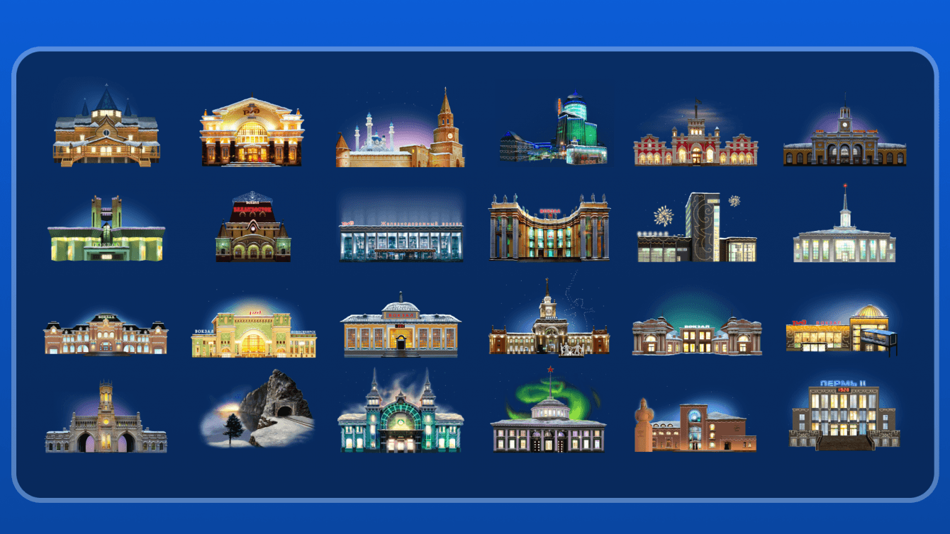 Приложение разрабатывали на базе гипотез и мудборда, предоставленных заказчиком. Основой для scroll-driven анимированной гирлянды стала железная дорога, которая расположилась прямо на новогодней ёлке.