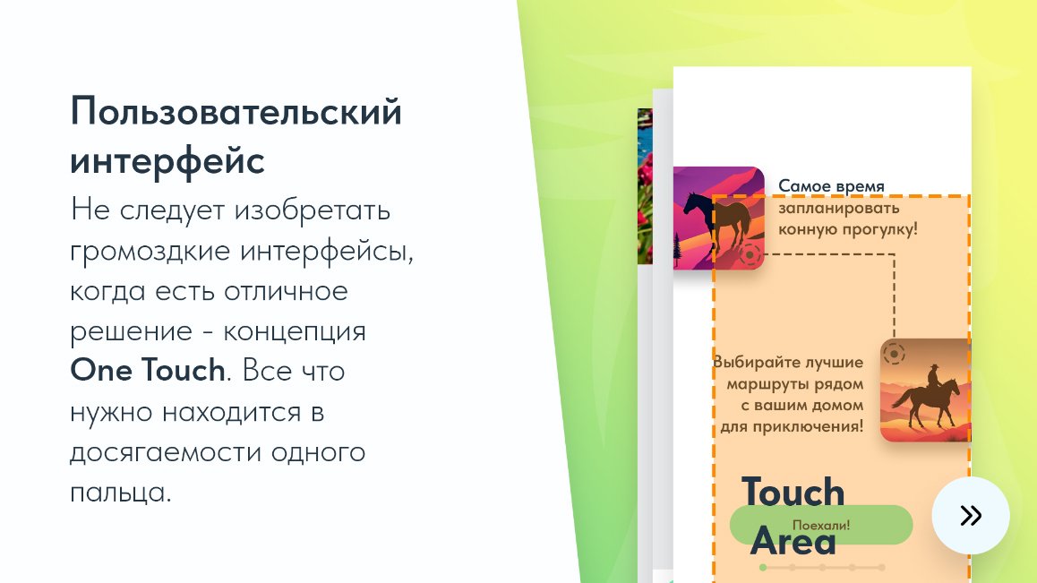 На основе общих пожеланий заказчика было выполнена разработка и демонстрация несколько вариантов дизайна мобильного приложения, с учетом всех пожеланий, а также гайдлайнов платформ, современных тенденций дизайна и концепции One Touch.