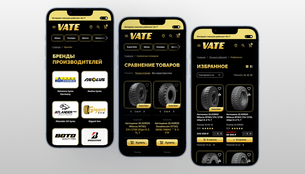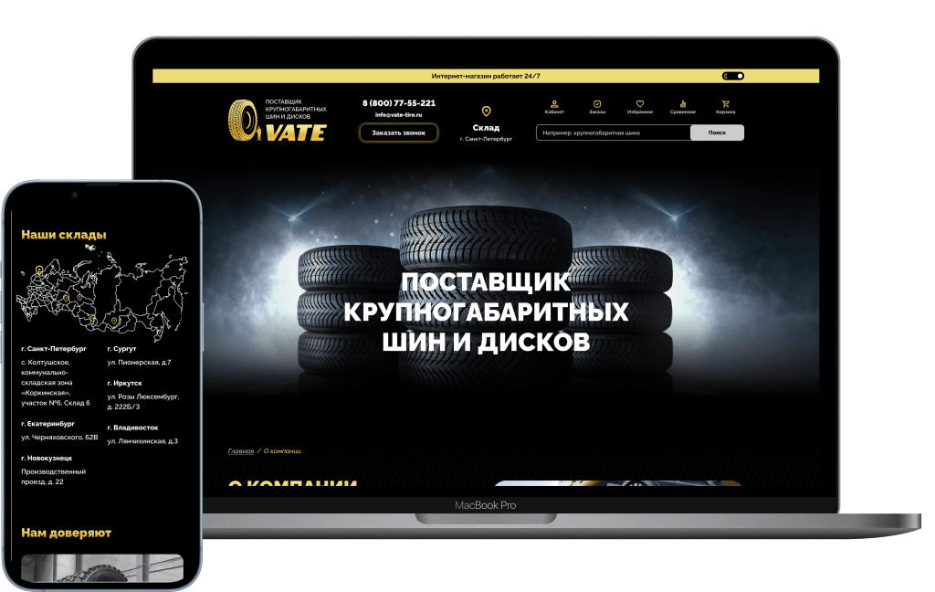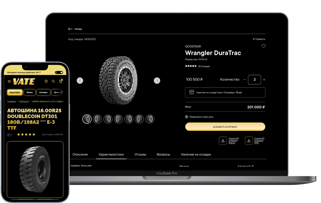 Для одного из самых крупных в РФ оптовых дистрибьюторов и импортеров крупногабаритных, сверх крупногабаритных автошин, колесные дисков компании ООО «Вэйт» мы разработали полномасштабный дизайн-проект.