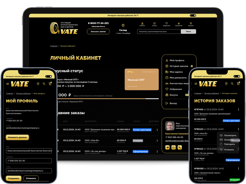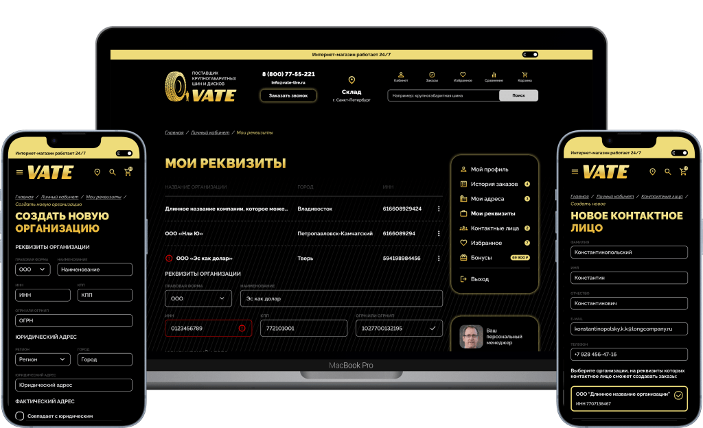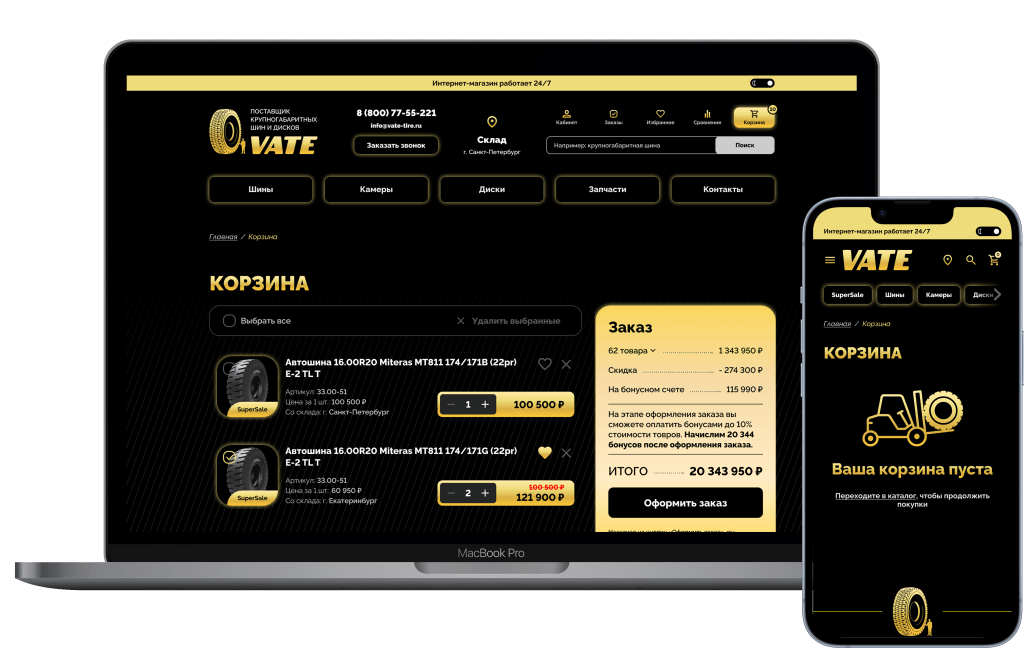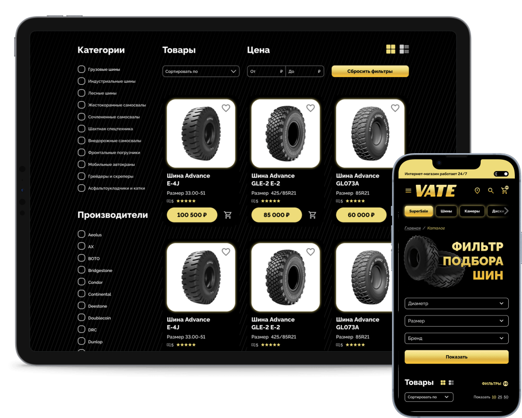 Для одного из самых крупных в РФ оптовых дистрибьюторов и импортеров крупногабаритных, сверх крупногабаритных автошин, колесные дисков компании ООО «Вэйт» мы разработали полномасштабный дизайн-проект.