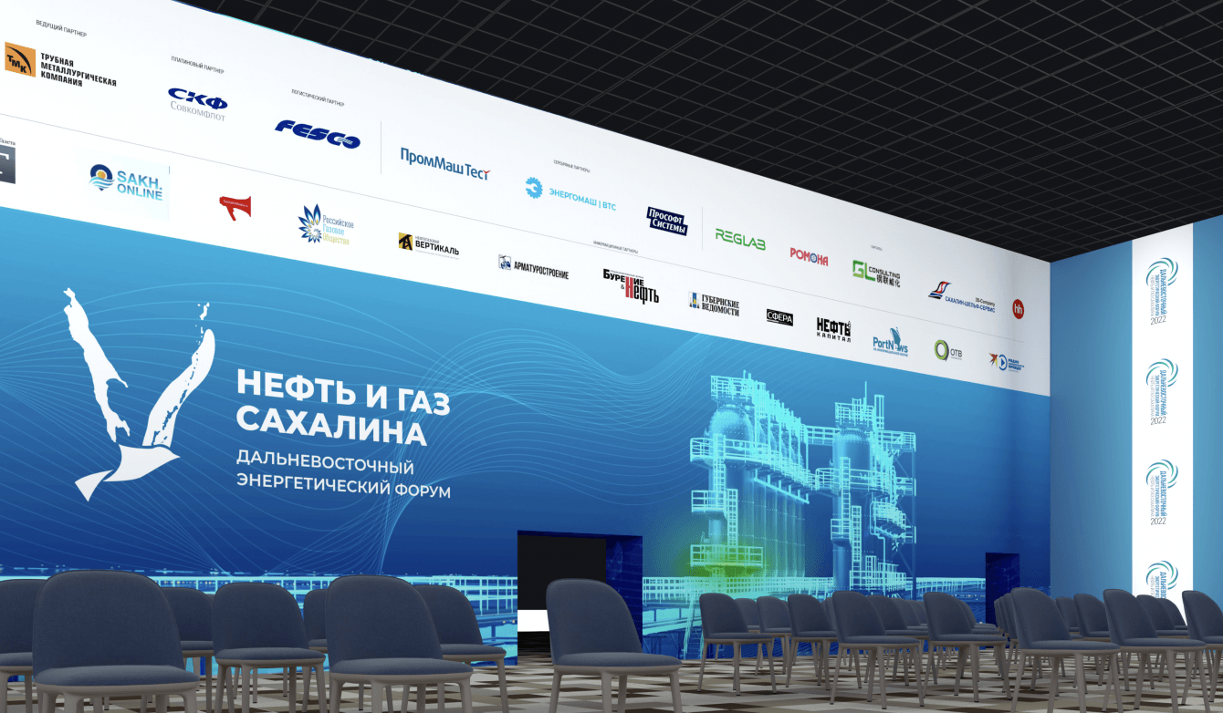 Задача: создать единый стиль мероприятия, который бы полностью отражал тематику форума, а также прослеживался стиль Сахалинской области