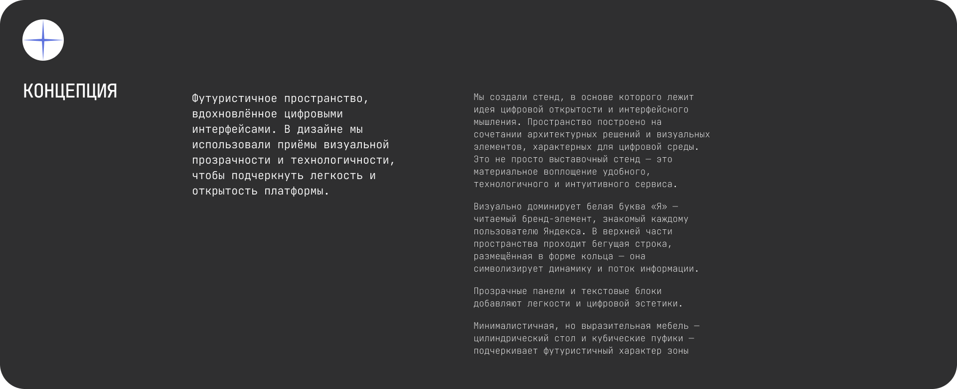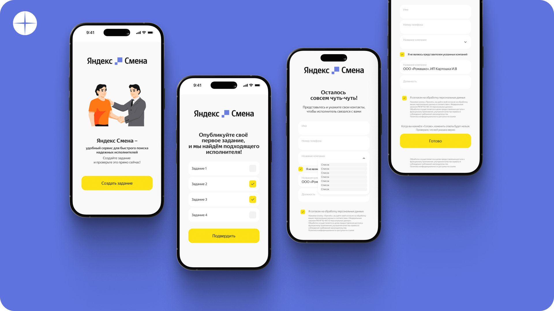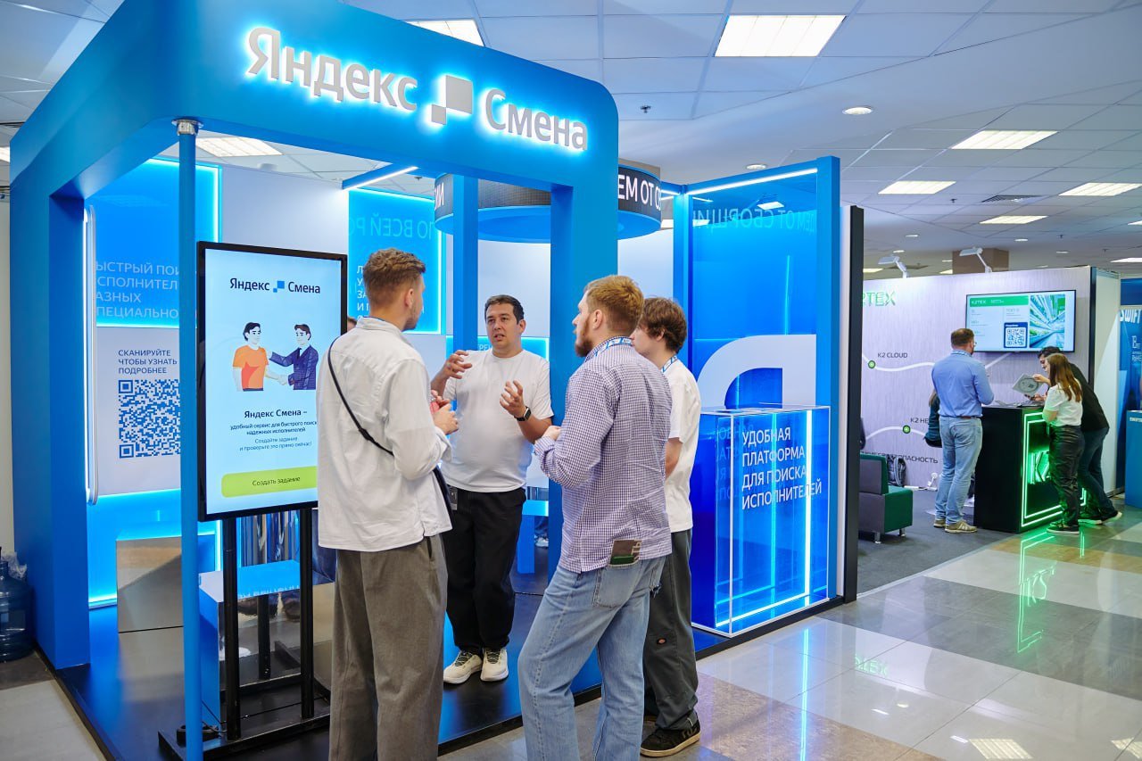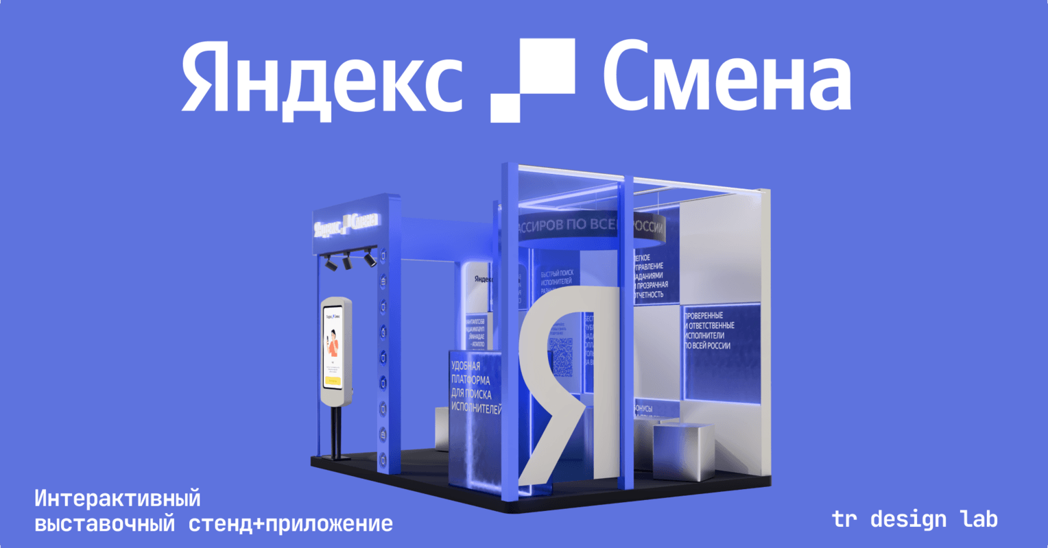 Создать экспозицию, которая ярко и технологично представляет сервис «Яндекс Смена» как удобную платформу для подбора исполнителей по всей России.