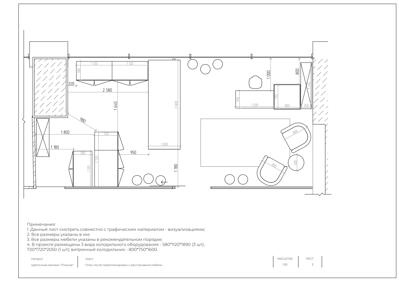 2) Основная торговая зона: Свободная планировка с мобильными стеллажами-подиумами для демонстрации композиций, обеспечивающая легкую реорганизацию под сезонные коллекции.