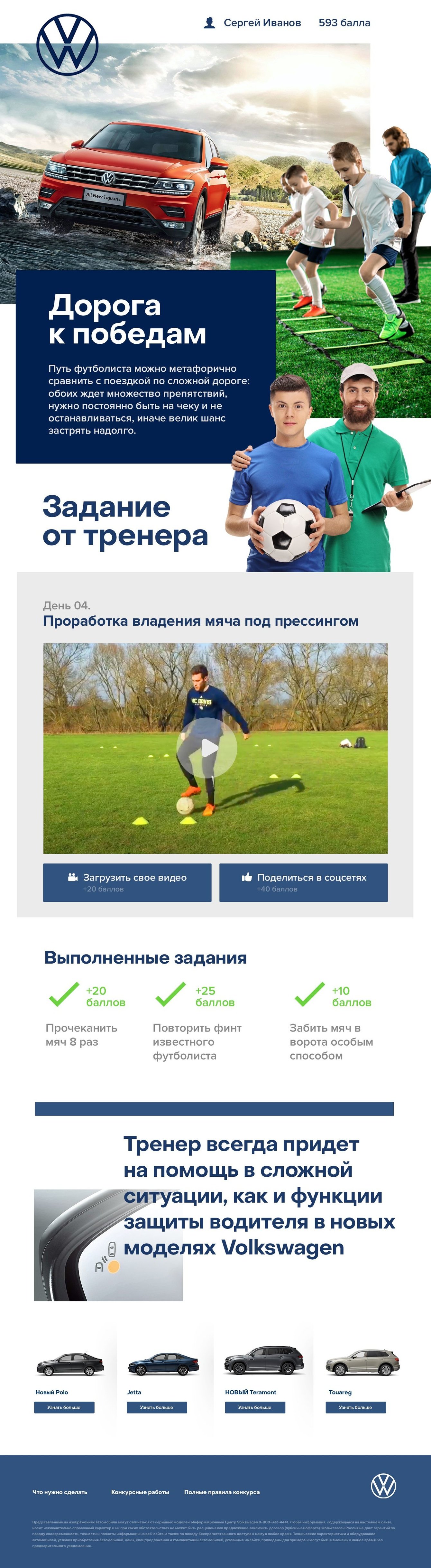 Совместить Volkswagen и футбол. Сделать понятный концепт дизайна сайта для детей и взрослых.