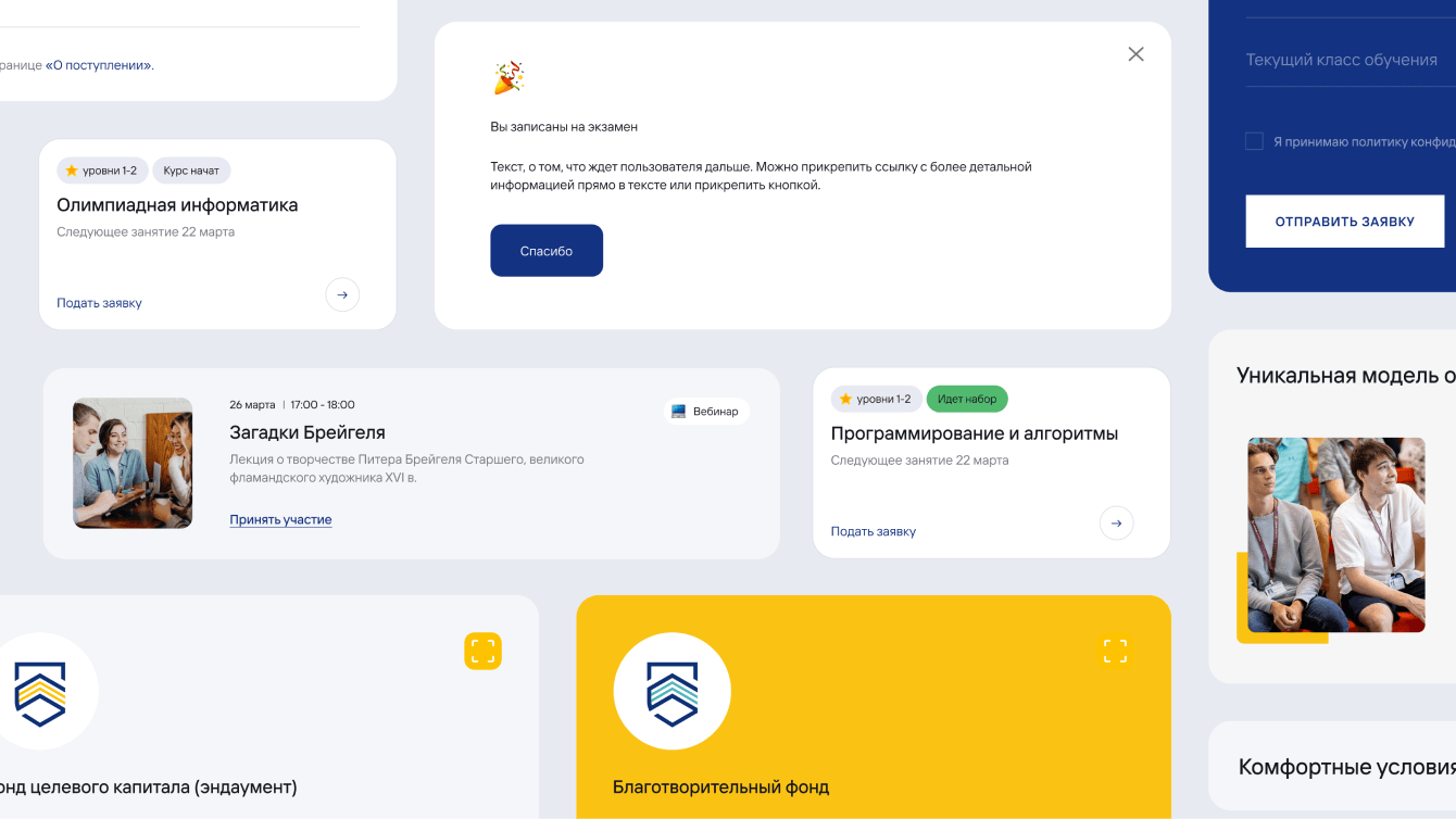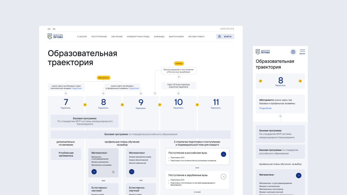 Создали для школы «Летово» дизайн-систему, которая объединяет конструктор блоков, ключевые страницы сайта и личный кабинет абитуриента. Сделали структуру общего сайта легче.