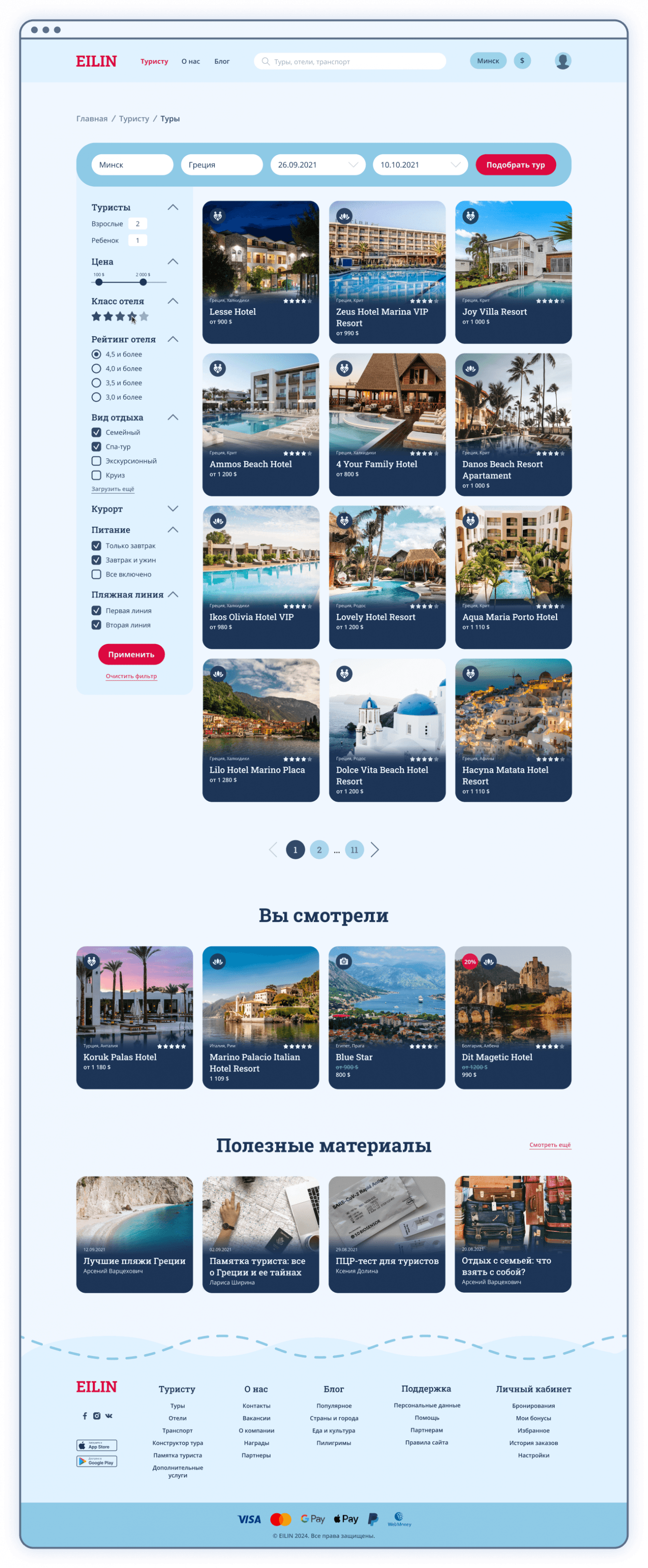 - сайта туристического агентства (предназначен для продажи и бронирования туров),