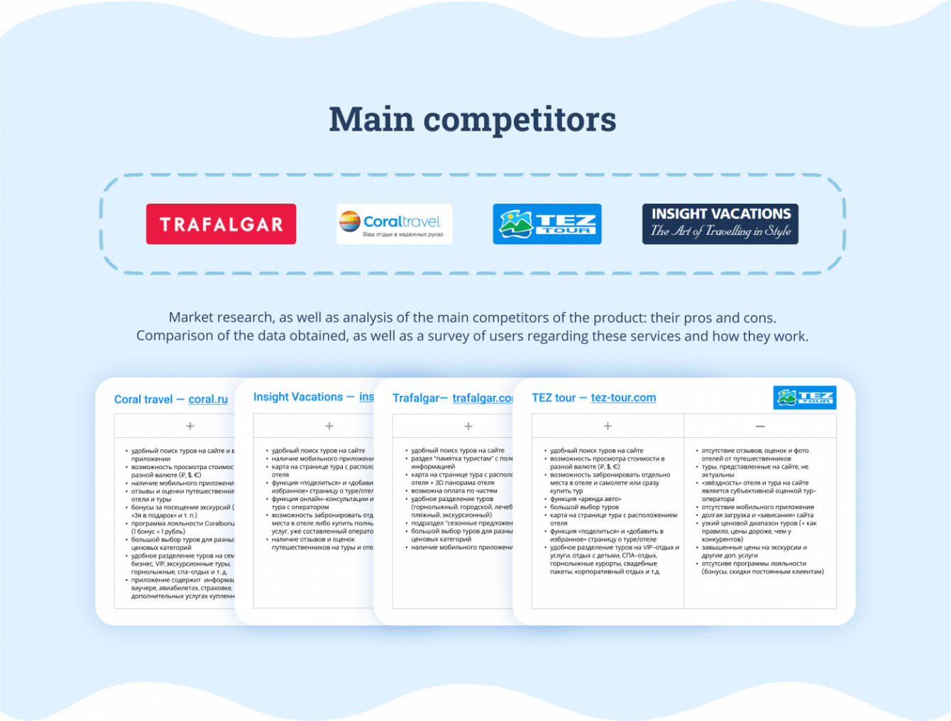 Проблема заказчика: низкий процент продаж туристического продукта в офлайне, отсутствие веб-сайта и мобильных приложений, где покупатель мог бы узнать больше о турах, билетах и забронировать их.