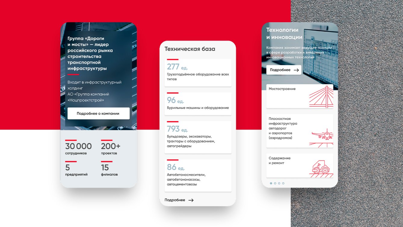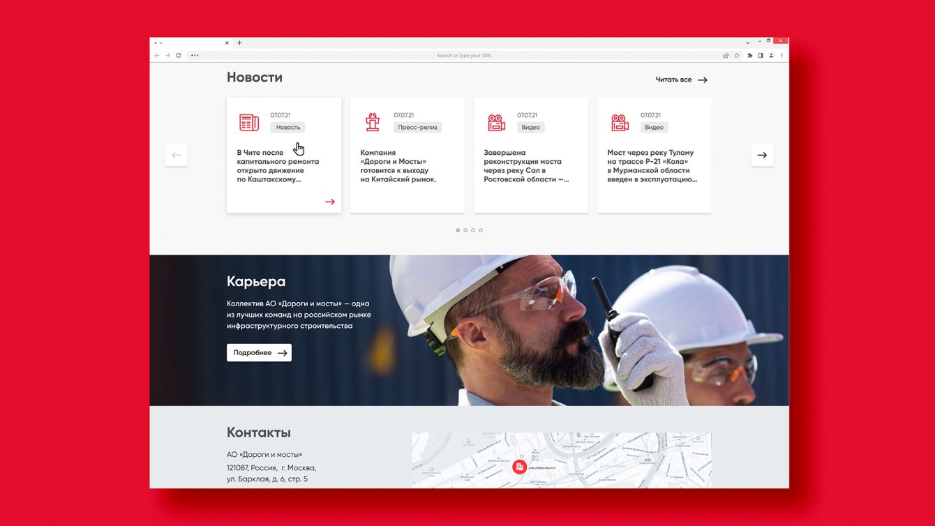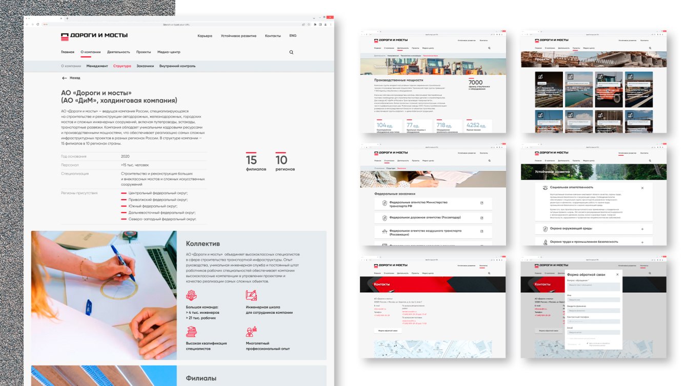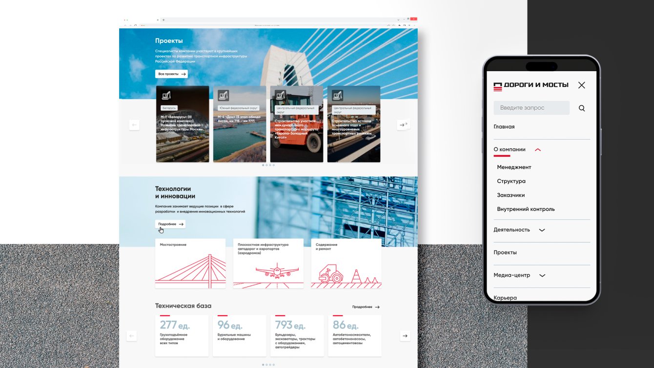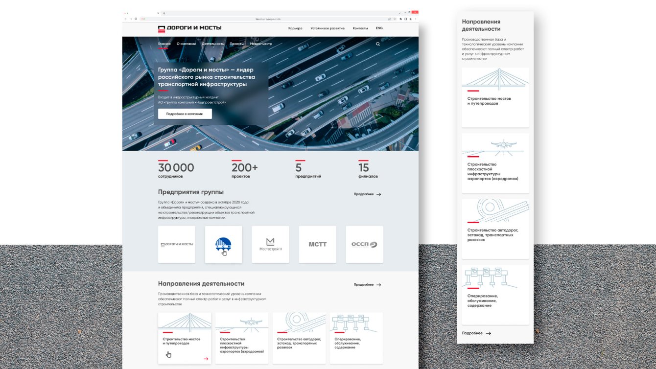 С разработкой сайта крупнейшая в стране компания в сфере инфраструктурного строительства и реконструкции получила в своё распоряжение удобный и продуманный информационный инструмент с понятной и логичной структурой, где можно быстро получить все интересующие сведения о Группе «Дороги и Мосты».
