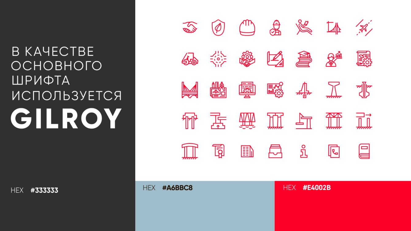 Структурно, графически и стилистически сайт выстроен на тех же самых принципах, что и логотип Группы — он выглядит стройно, лаконично, понятно и при этом строго, сбалансированно и уверенно, подчёркивая тем самым высокий профессионализм и лидерские позиции Группы «Дороги и мосты».