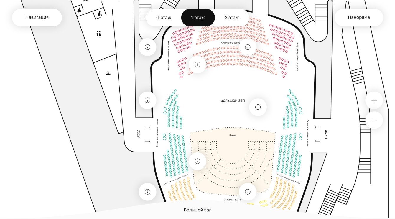 9. Страница с 3D-турами и схемами залов помогает пользователю шаг за шагом ознакомиться с пространством.