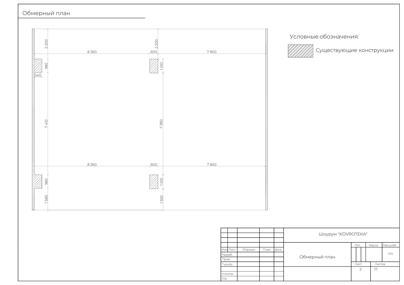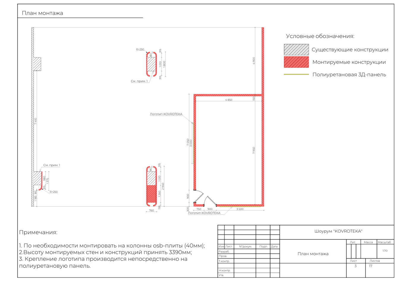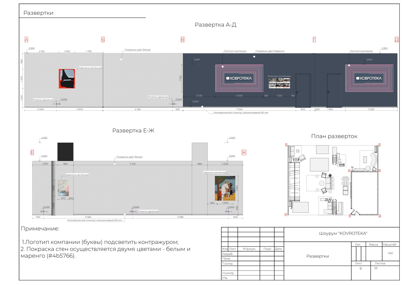 После утверждения визуальной концепции мы разработали рабочие чертежи. Мы включили: