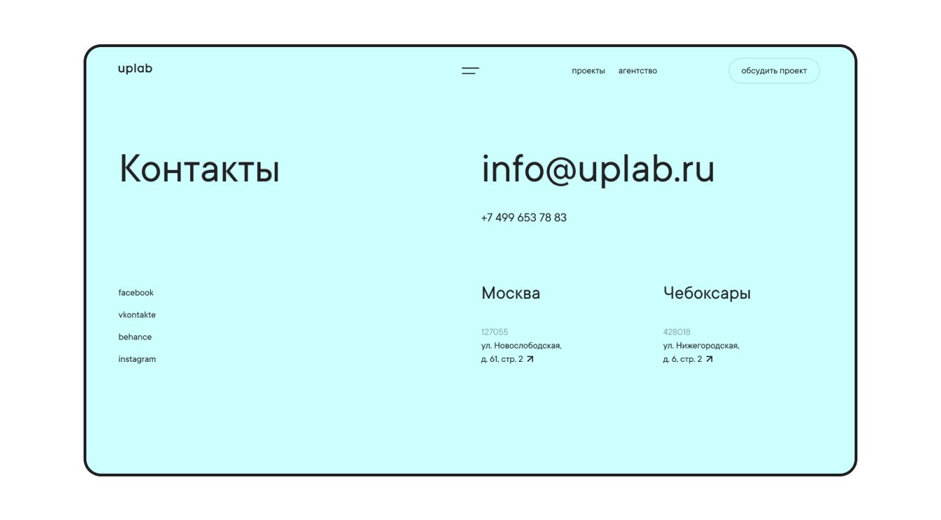 1. Косой срез – стилеобразующий элемент, символизирующий рост – главную идею Uplab.