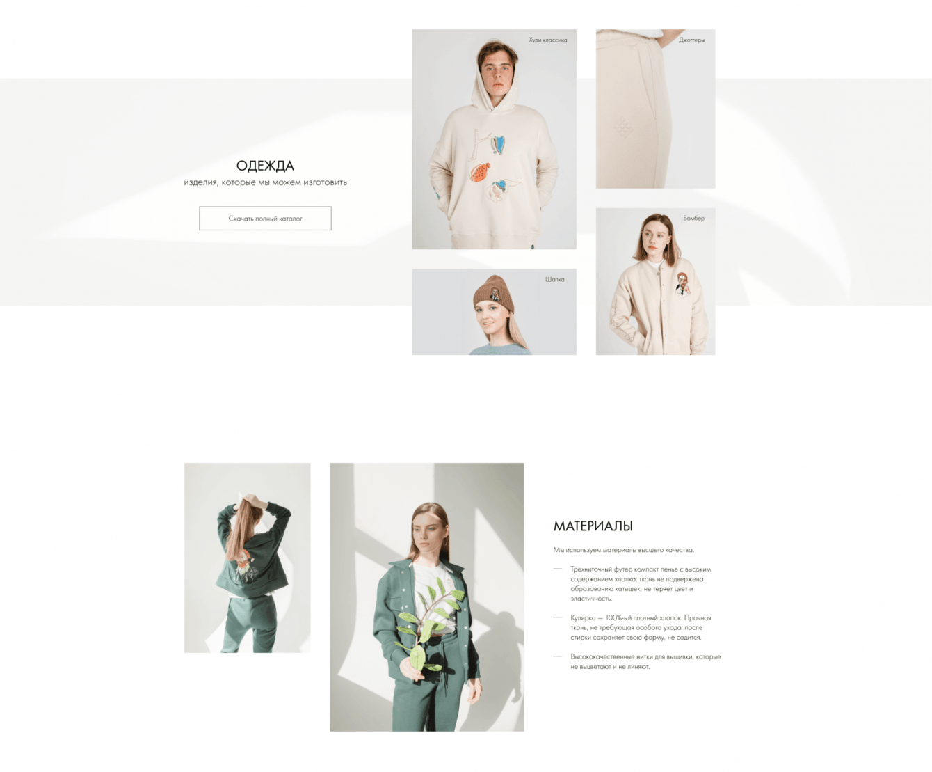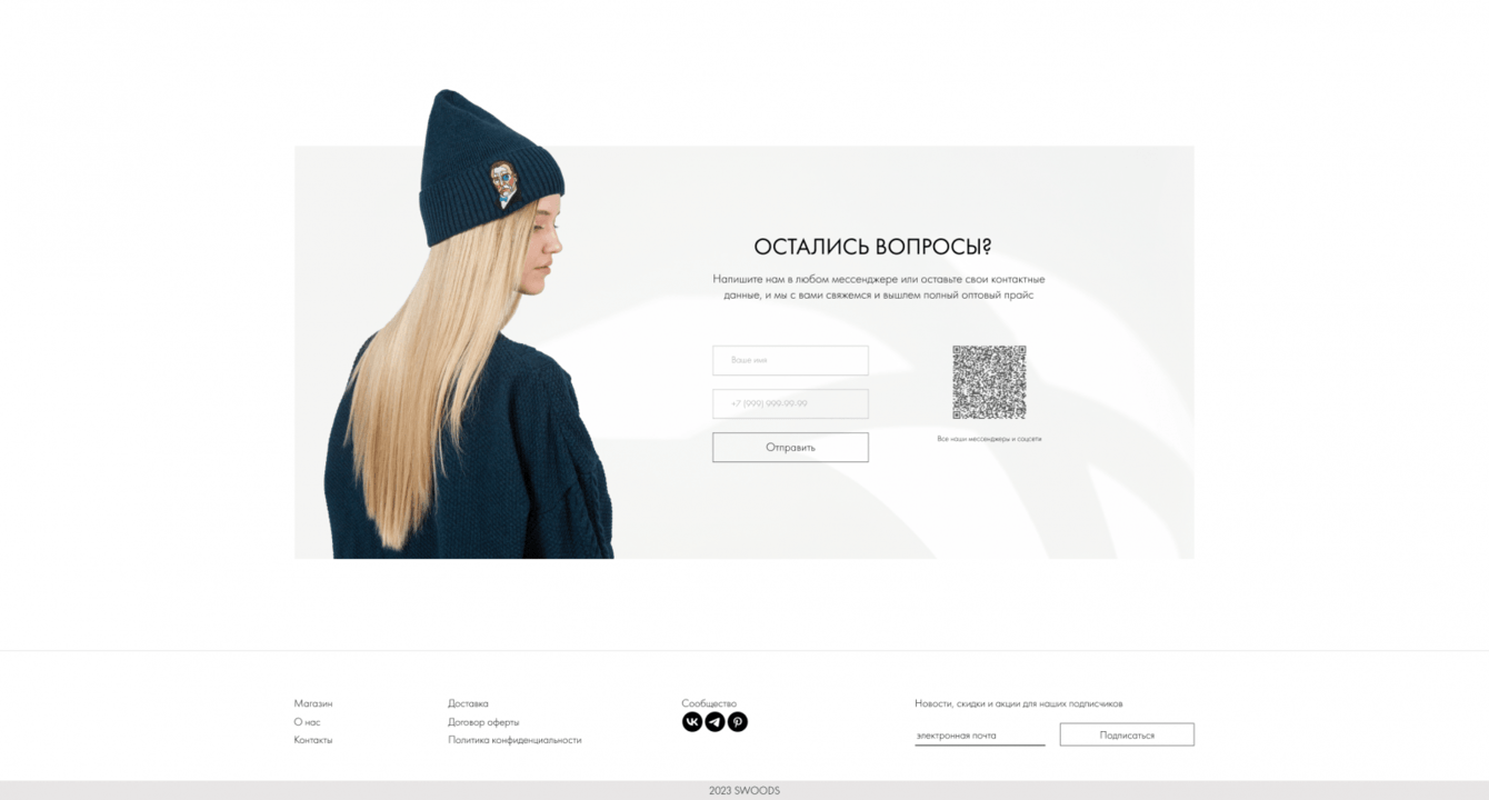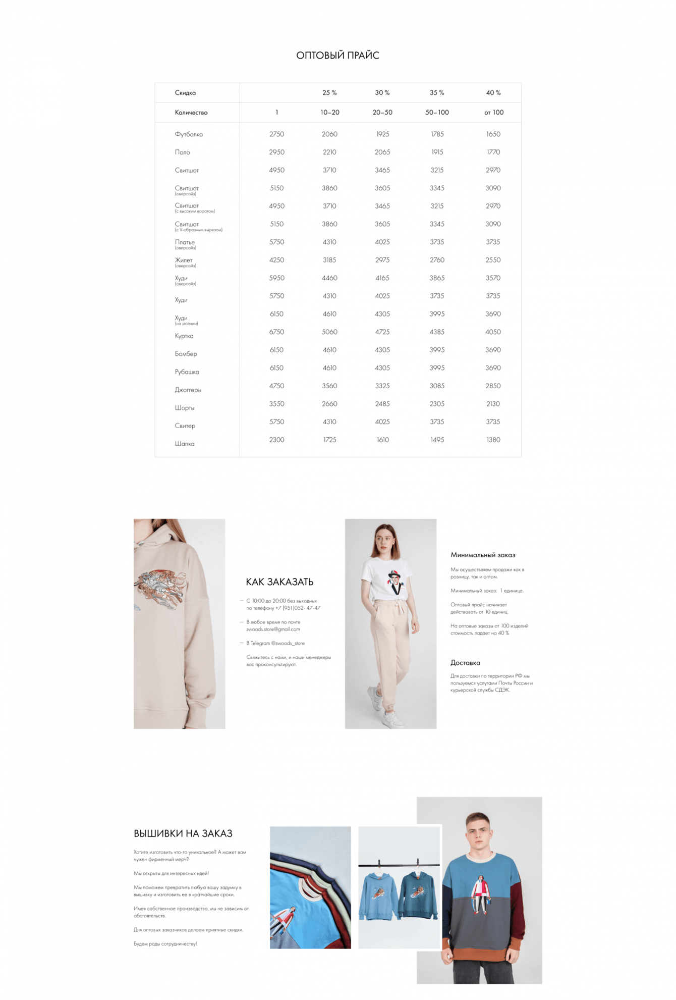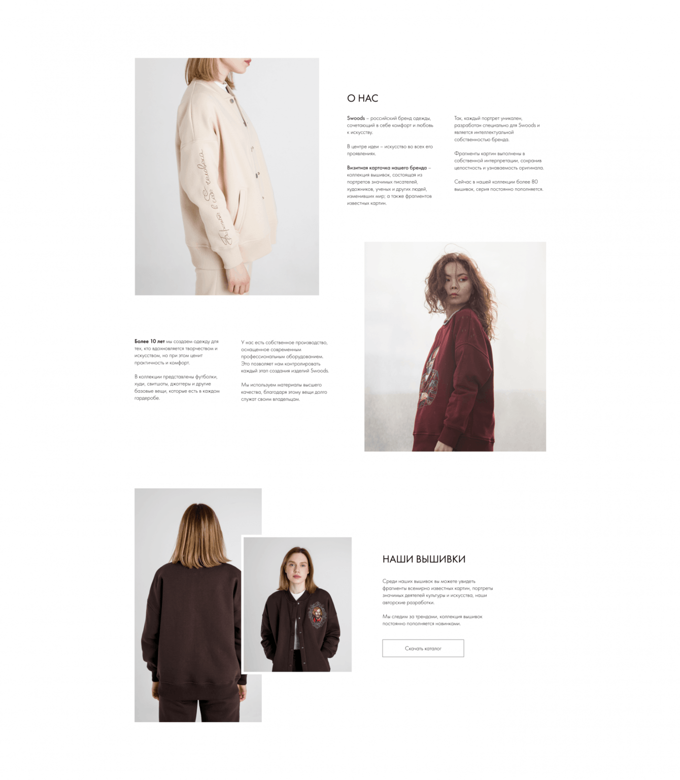 Дизайн страницы на сайте для бренда одежды SWOODS.
