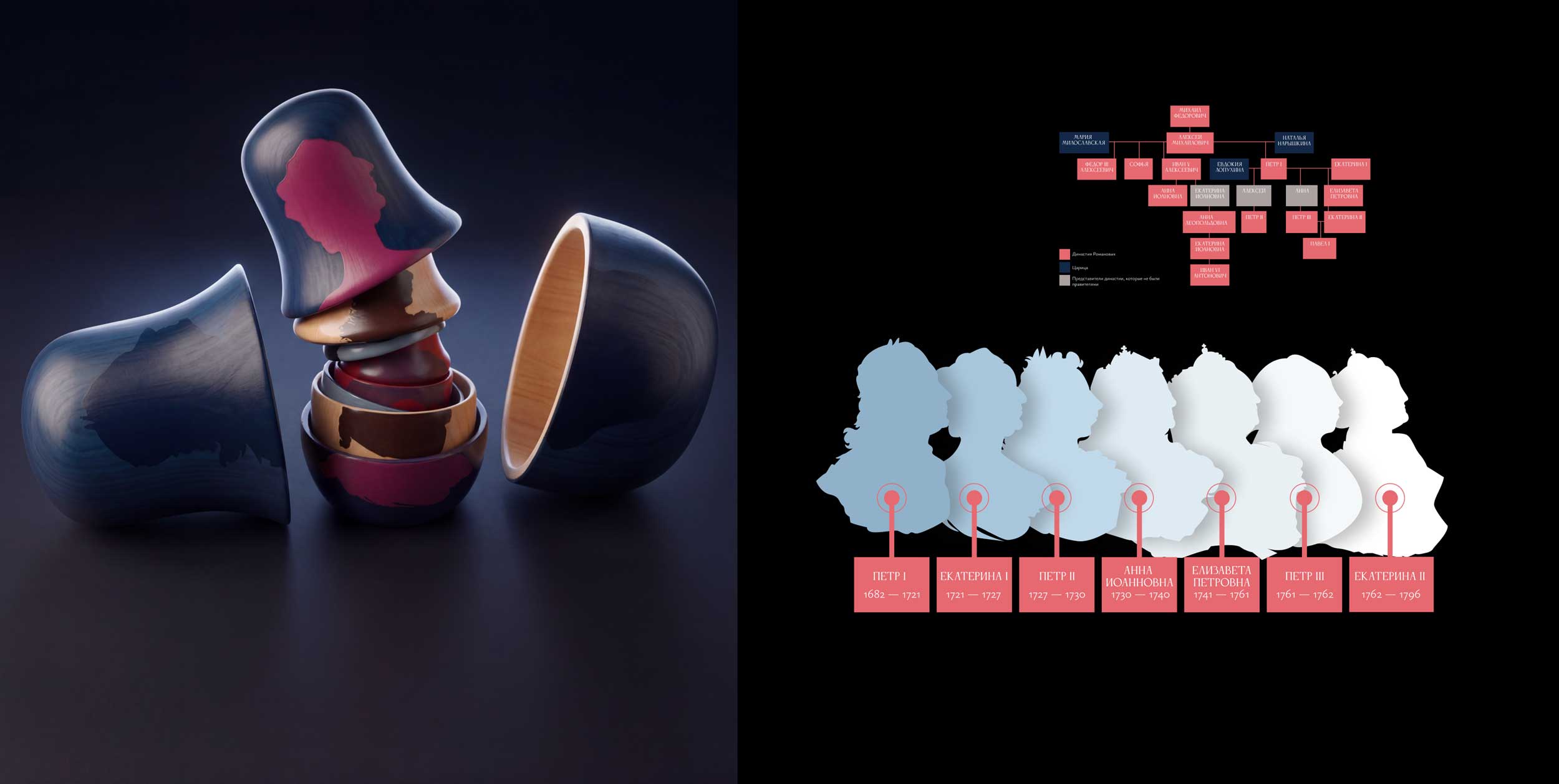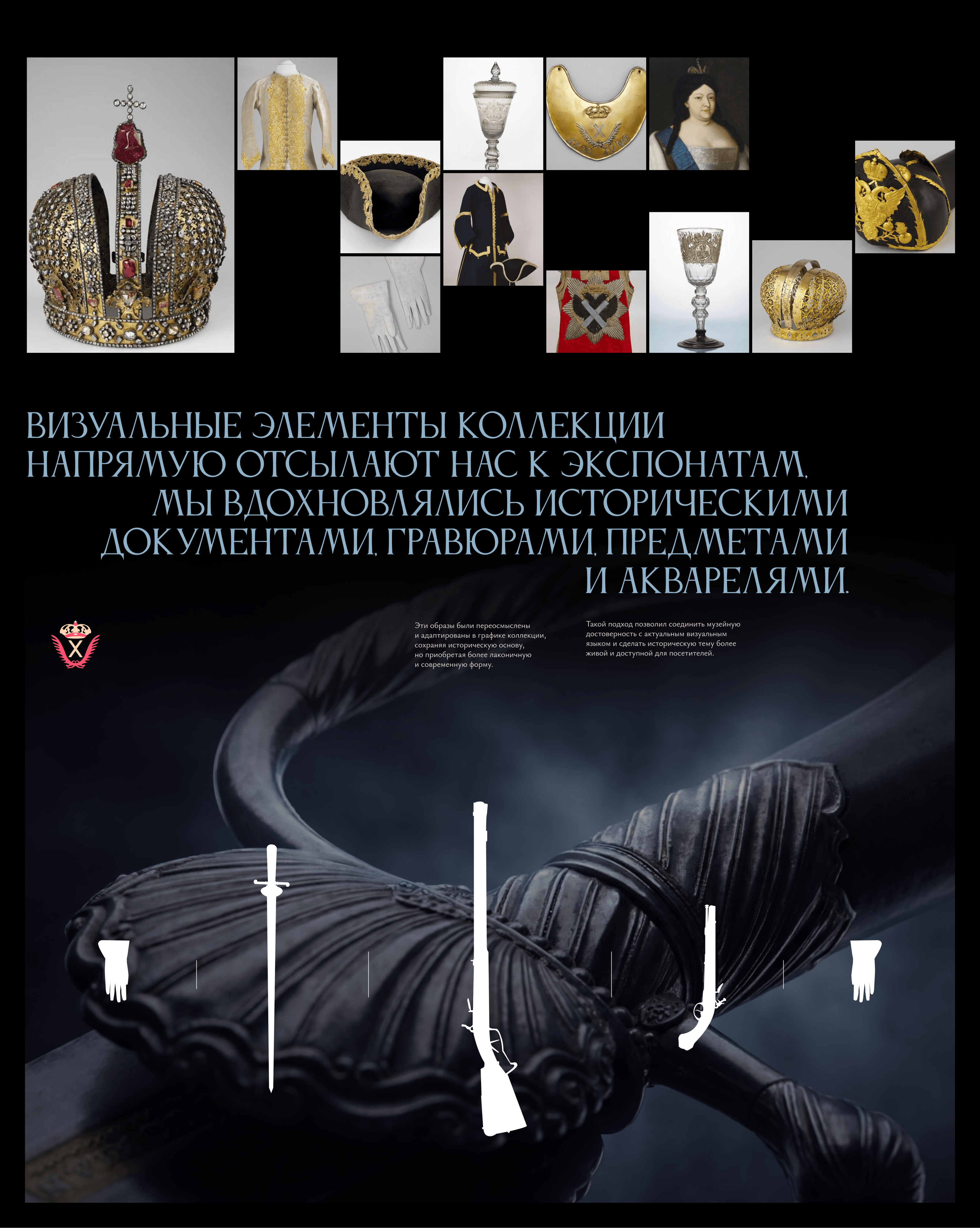 Одной из ключевых задач стало погружение в эпоху дворцовых переворотов — изучение исторического контекста, визуального языка времени, символов власти и атрибутов императорского двора. Это позволило точнее почувствовать характер эпохи и создать уникальный визуальный образ, который опирается на историю, но при этом воспринимается современно и выразительно.