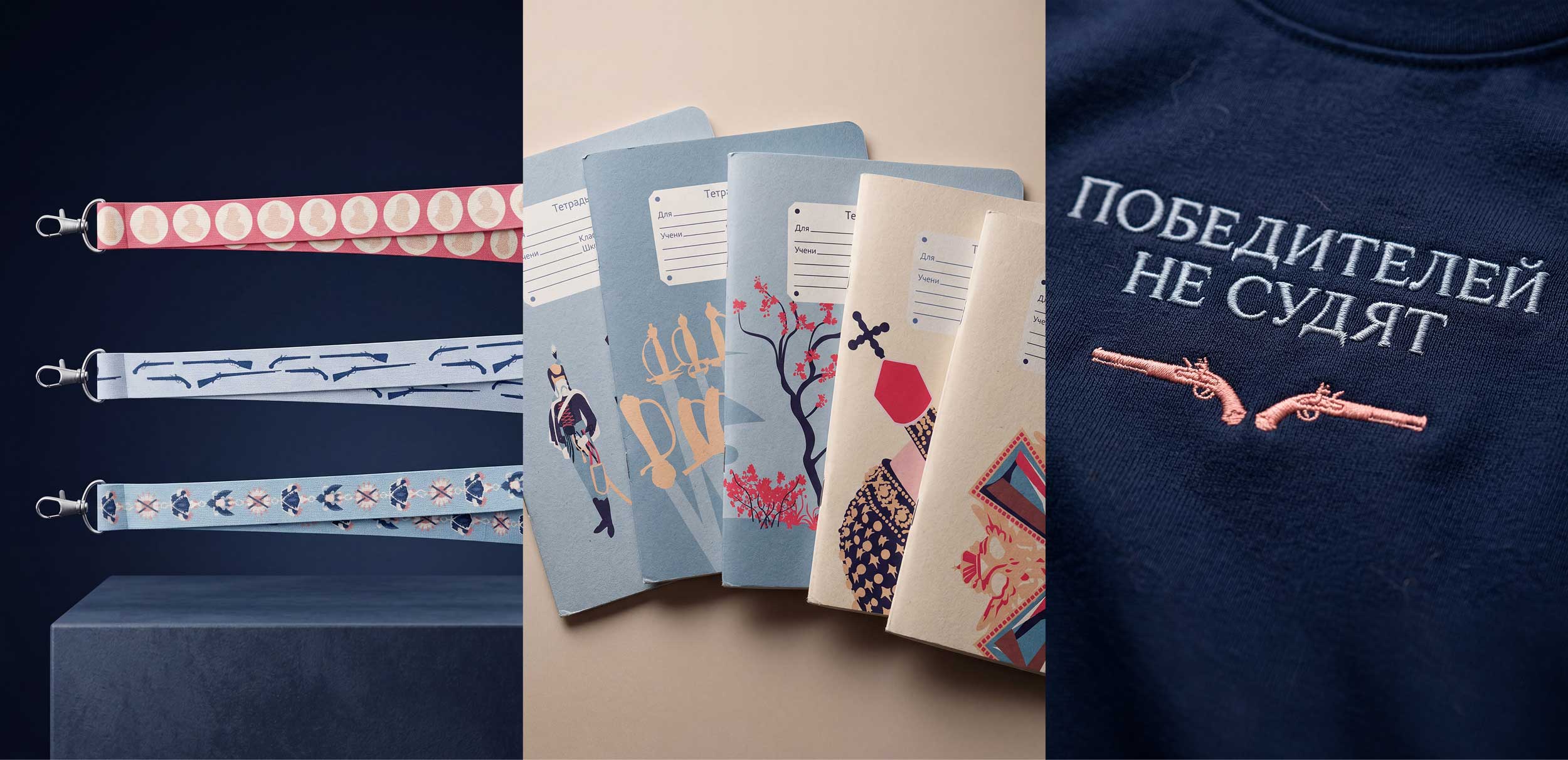 Отдельным удовольствием стала работа над шутливыми и ироничными надписями на предметах коллекции. Эти небольшие текстовые детали добавляют проекту лёгкости и помогают снизить излишнюю серьёзность исторической темы, превращая сувениры в более живые и запоминающиеся объекты.