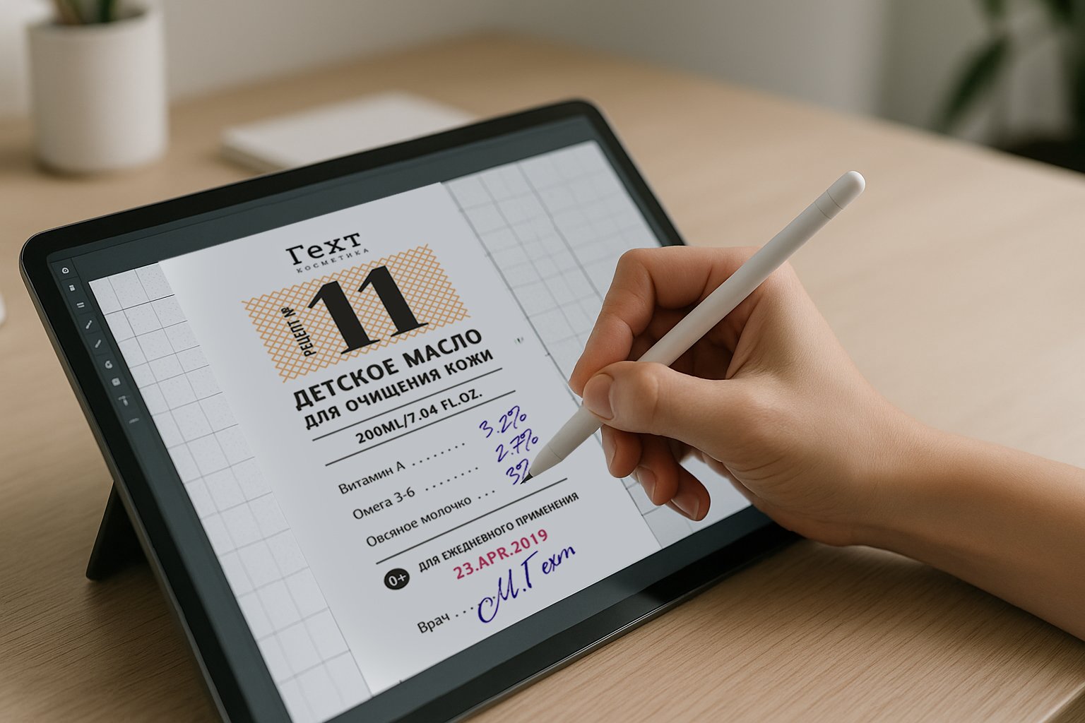 Работа по созданию нового аптечного бренда была начата с нуля, на момент начала разработки он не имел никаких атрибутов. Бренд должен быть воспринят, как принадлежащий к средне-низкому ценовому сегменту, но выглядеть достойно и не вызывать подозрения в низком качестве препаратов. Напротив, вид упаковки должен ассоциироваться с аптечным препаратом, приготовленным в строгом соответствии с рецептурой. Было принято решение, что концепт упаковки будет выполнен в стиле рецепта врача – официально, строго, ответственно.