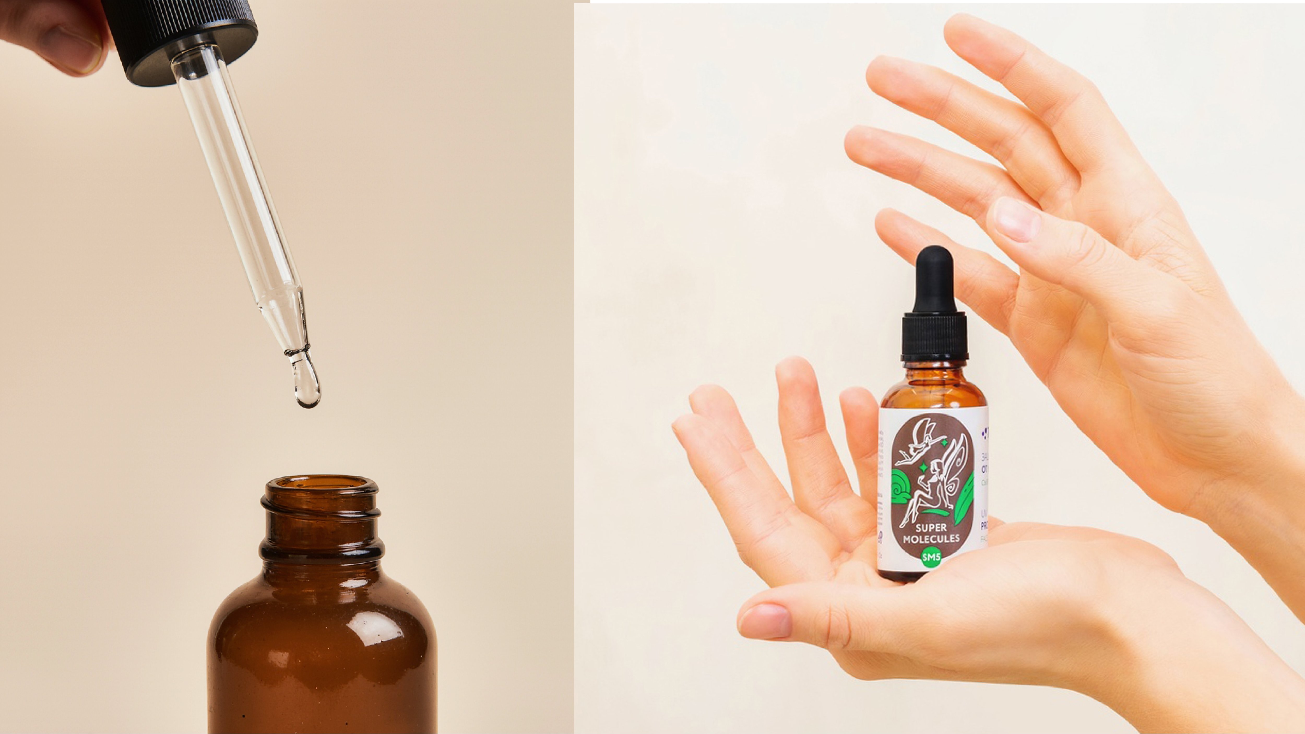 Дизайн упаковки косметических сывороток во флаконе с пипеткой. Каждый флакон имеет нанесение дизайна и упакован в коробку.