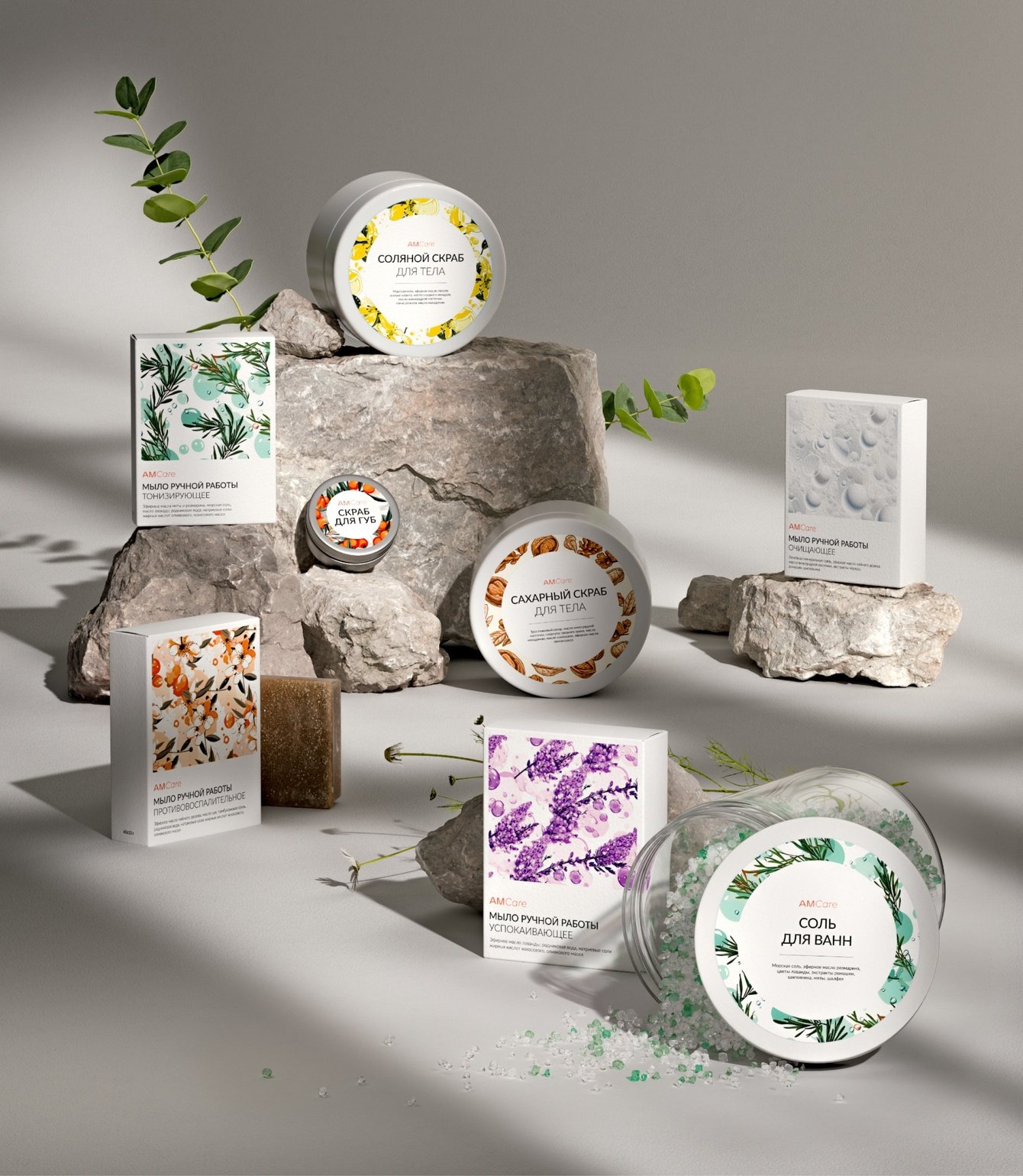 В этой коллекции утилитарность уступает место сенсорике: неровности мыла ручной работы, натуральный аромат, частички трав и цветов. Упаковка должна пробуждать эмоции, но не выбиваться из общего стиля бренда.