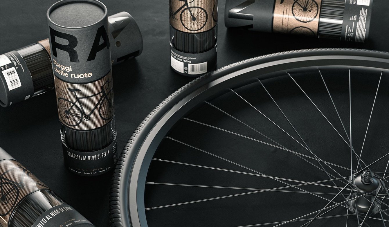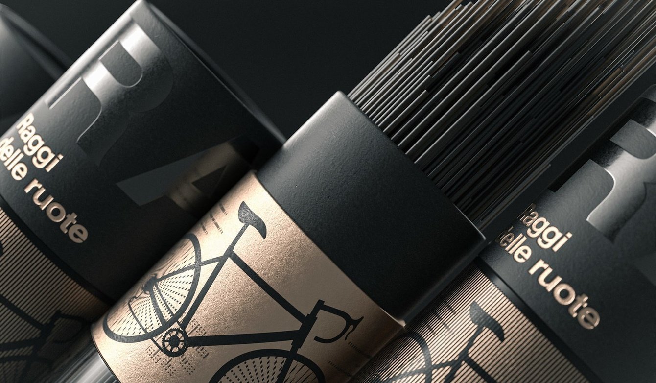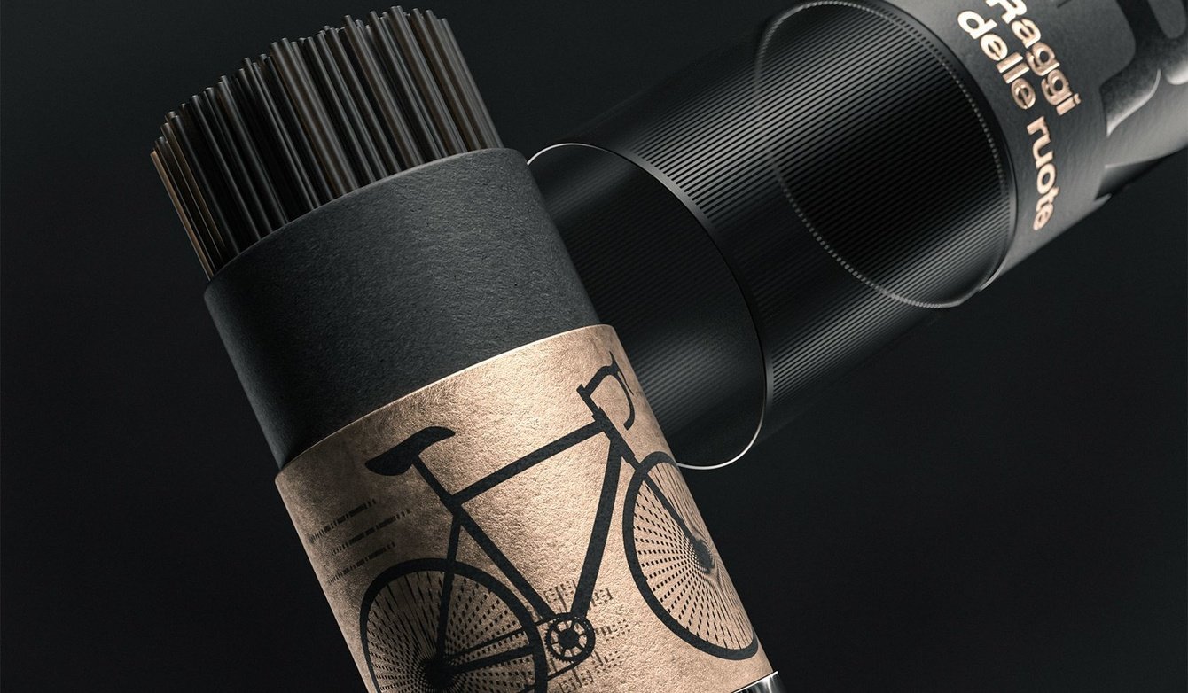 Raggi delle route — в переводе с итальянского «Велосипедные спицы». Изящная упаковка в форме цилиндра из матового чёрного картона, с использованием специальной отделки — золотого тиснения и УФ-лакировки, явно указывает на принадлежность продукта к премиум-сегменту.