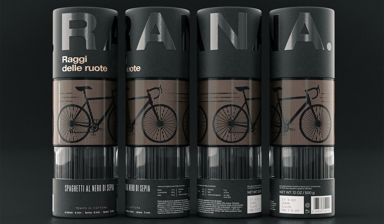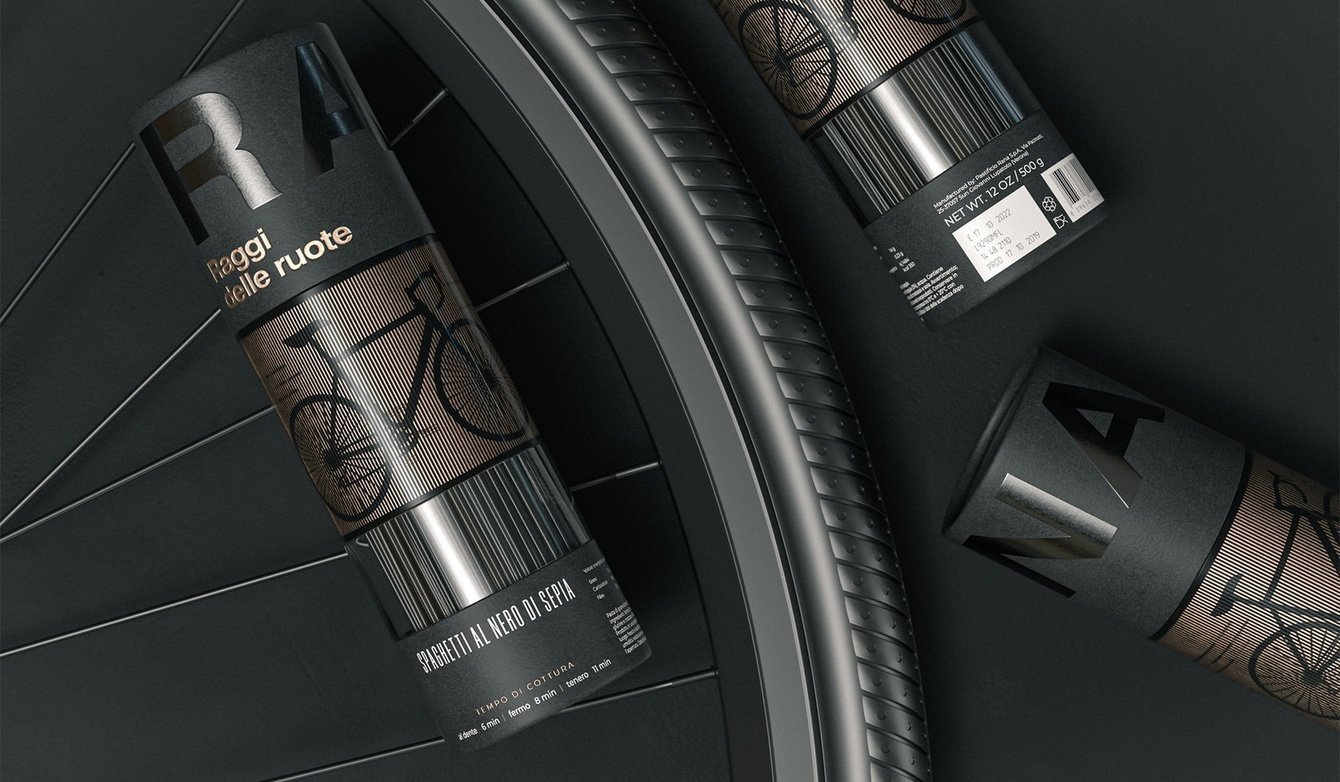 В основе концепции дизайна упаковки — метафора, сопоставляющая схожесть длинных спагетти и форму велосипедных спиц. Концепция подчеркивает принадлежность черных спагетти к сегменту healthy-food и питанию полезному для занятий спортом.