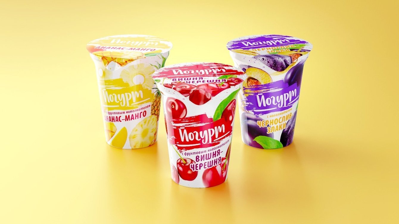 Создание яркого дизайна упаковки йогурта.
