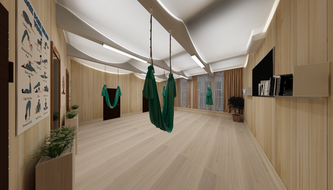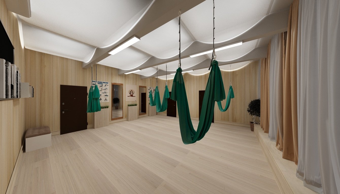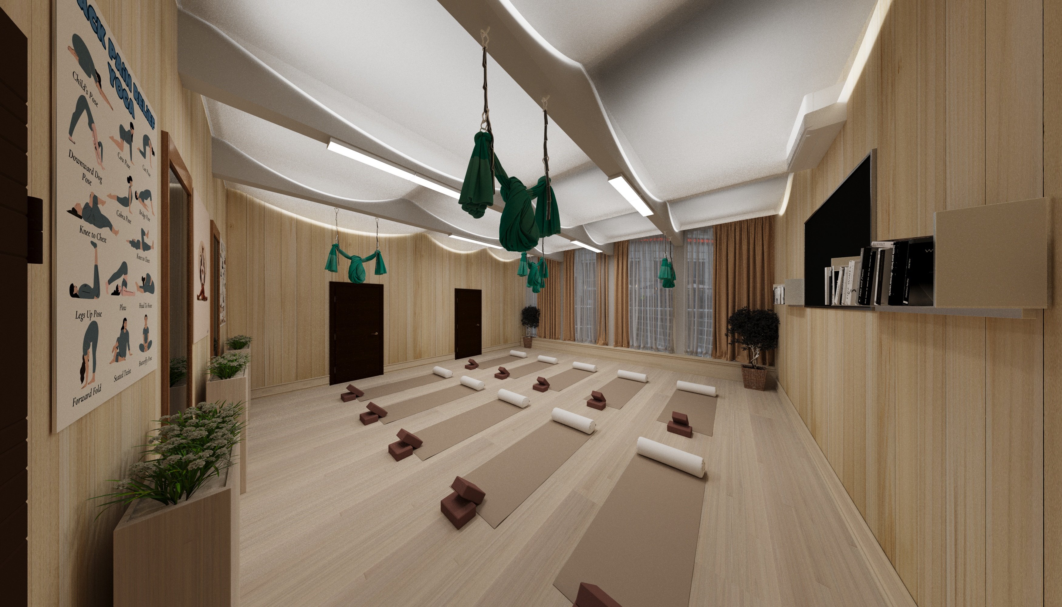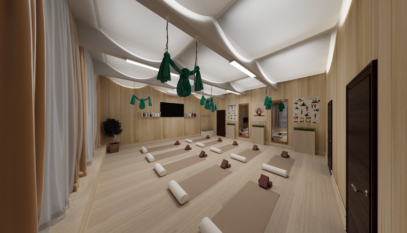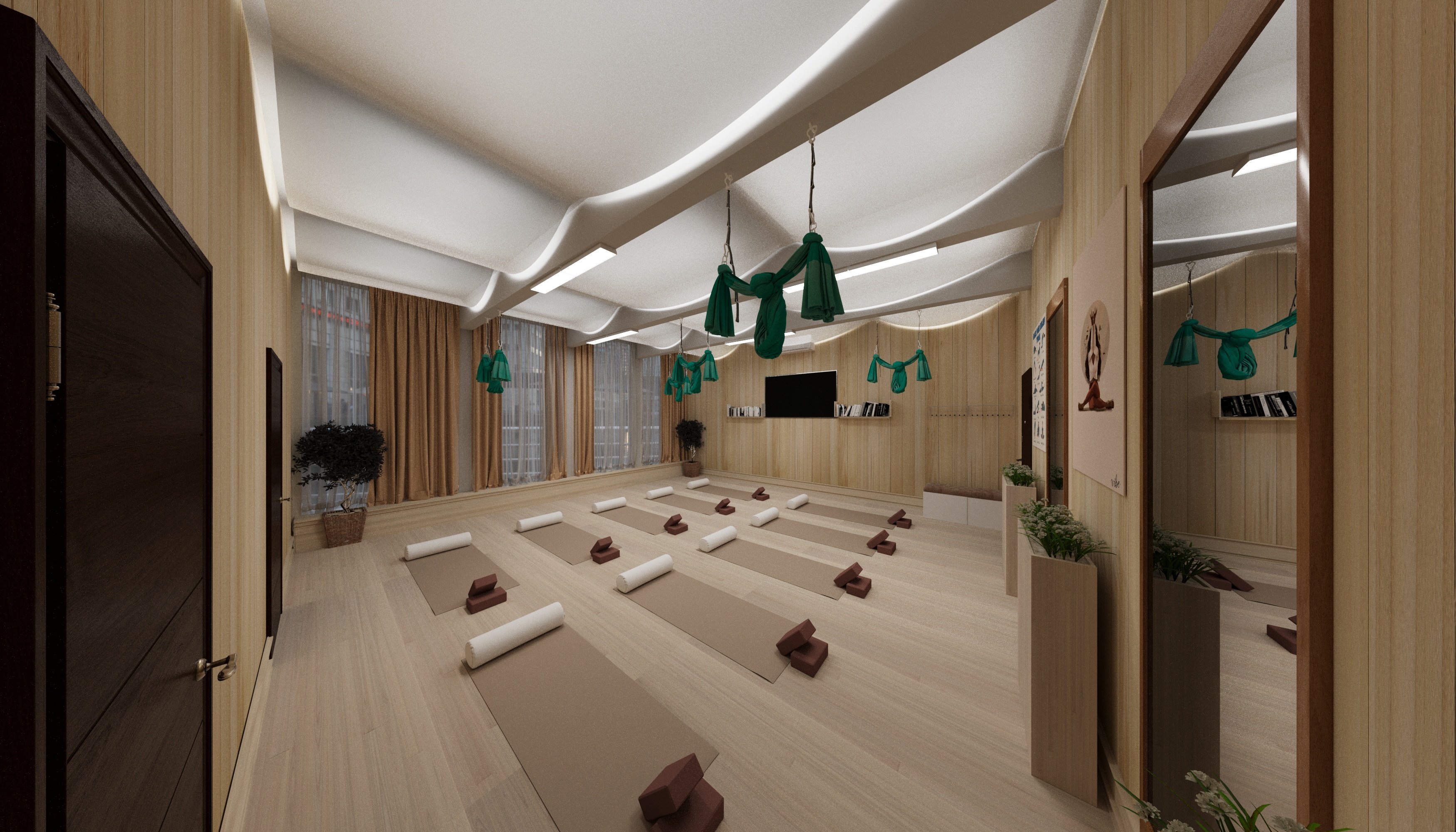 Работа над планировкой включала расположение зон для практики, раздевалок и зон для отдыха. Создали разные варианты расстановки мебели и зонирования, чтобы обеспечить оптимальное использование пространства и максимальный комфорт для посетителей.