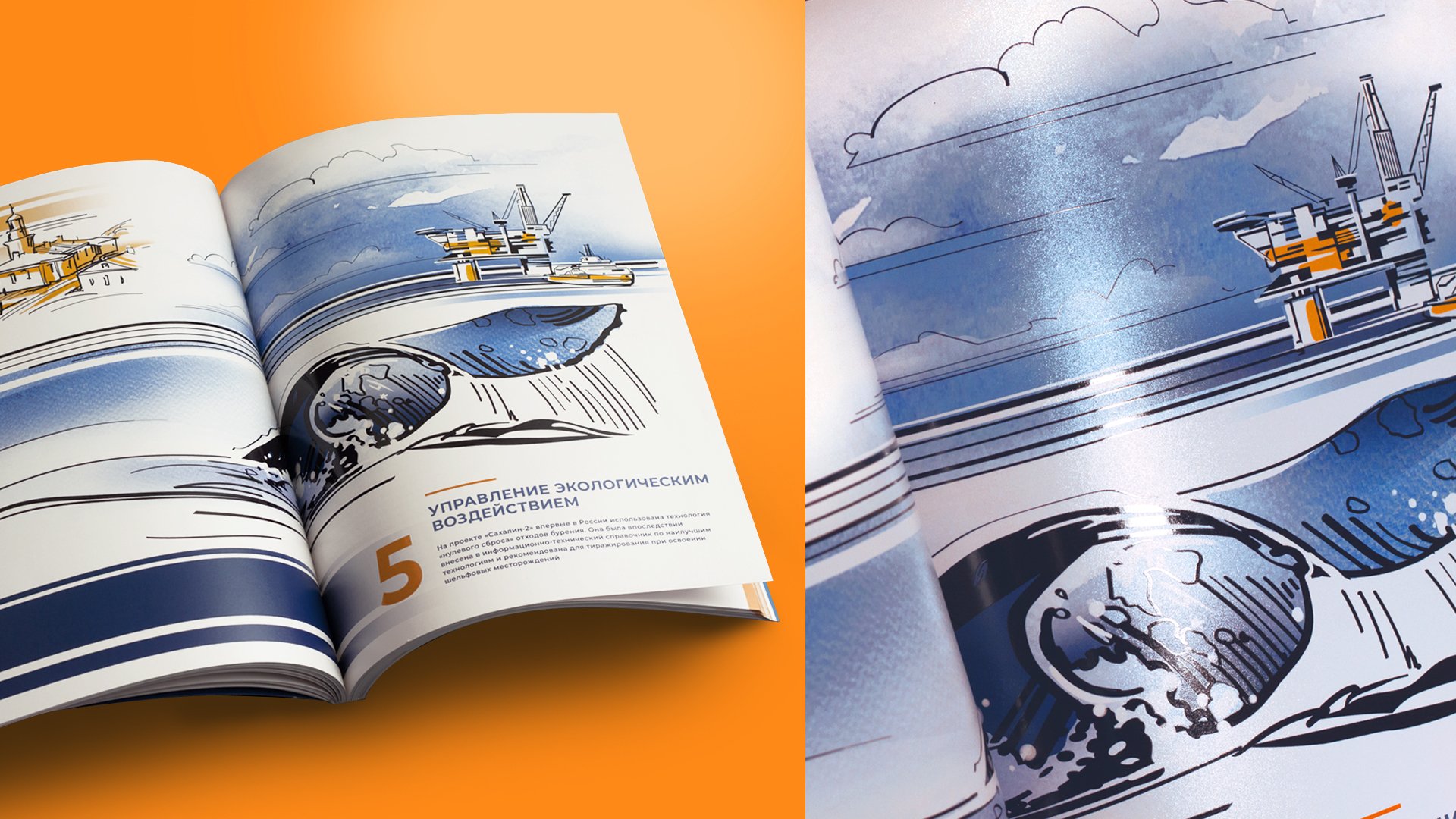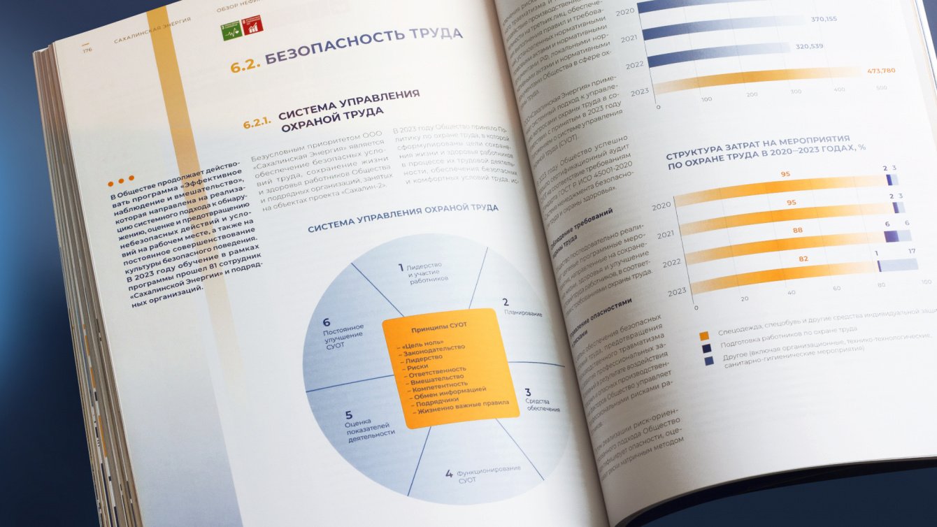 «Сахалинская энергия» — крупная российская нефтегазодобывающая компания, занимающаяся разработкой шельфовых месторождений в Охотском море. Для «Сахалинской энергии» мы разработали концептуальный дизайн юбилейного ESG-отчёта.