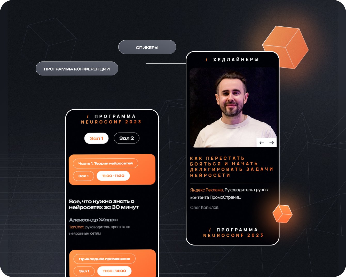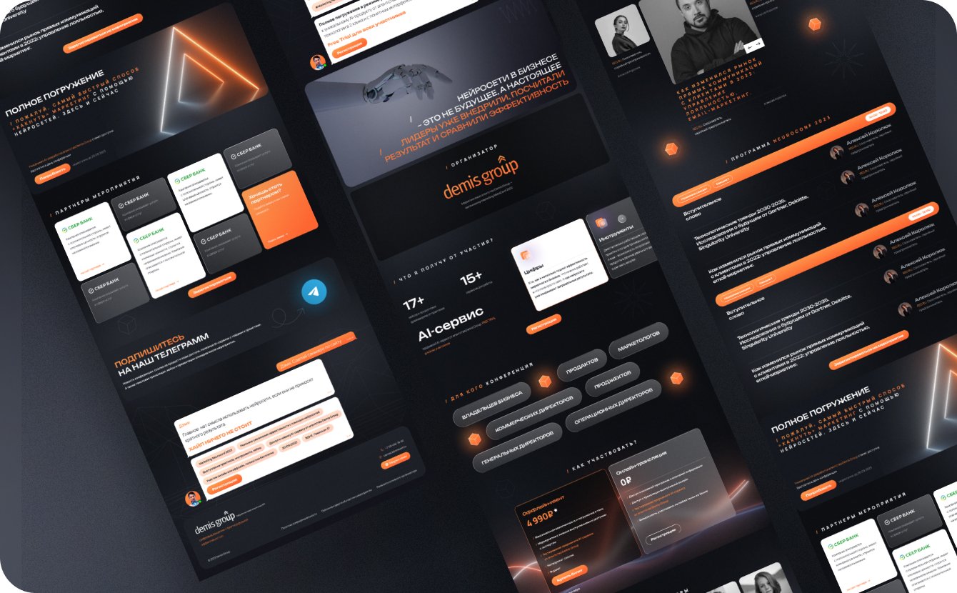 Уникальный лендинг задал настроение для всей конференции и привлек значительное количество участников. Это настоящее окно в будущее, объединившее технологии и креативность. Благодаря нашему подходу конференция стала ярким событием, удивившим и вдохновившим всех участников.