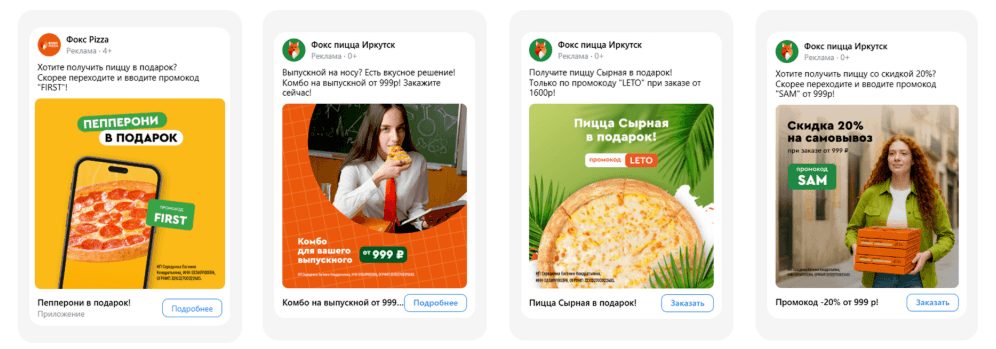 Главный оффер: Пепперони в подарок к первому заказу через приложение. Данное предложение показало наилучшую конверсию, так как мотивировало пользователя не только установить приложение, но и сразу совершить в нем первую покупку.