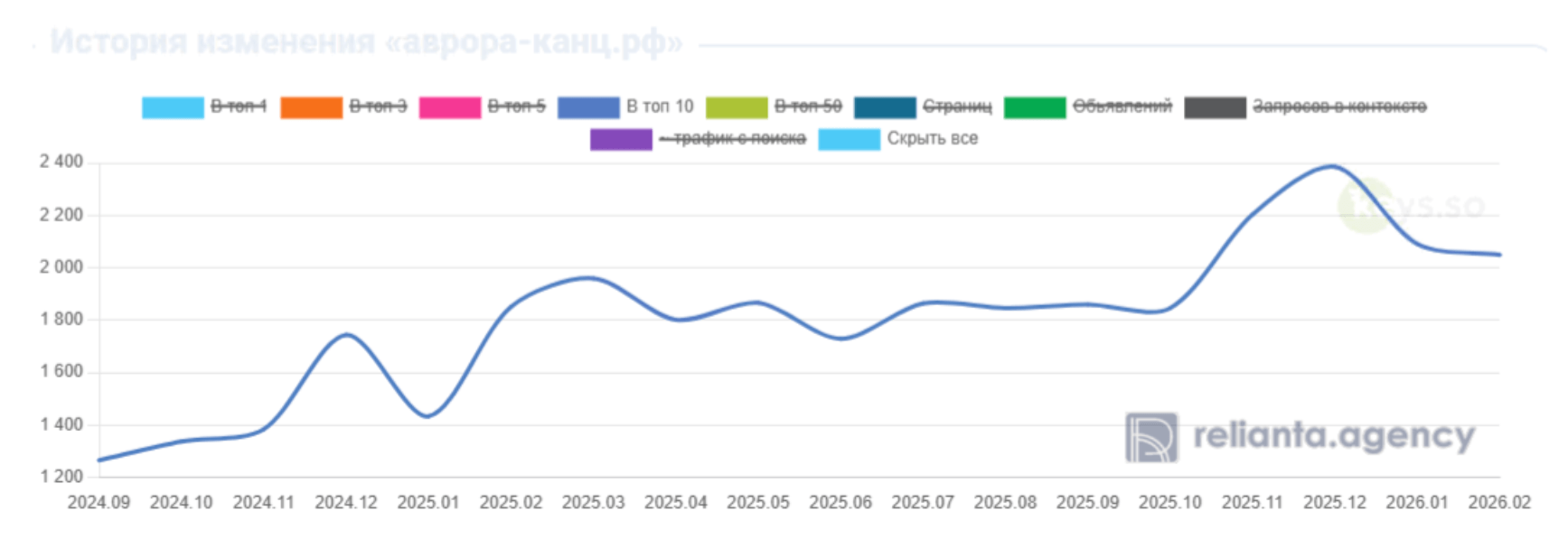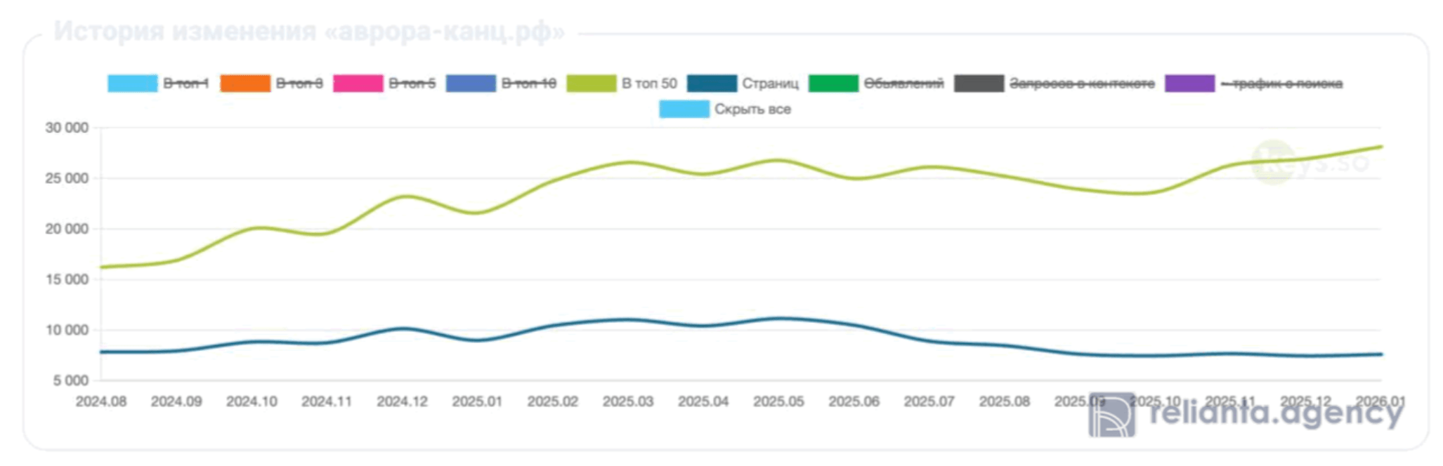 Данные из keys.so за последних 16 месяцев (01.09.2024-01.02.2026). Топ-50 и число страниц: