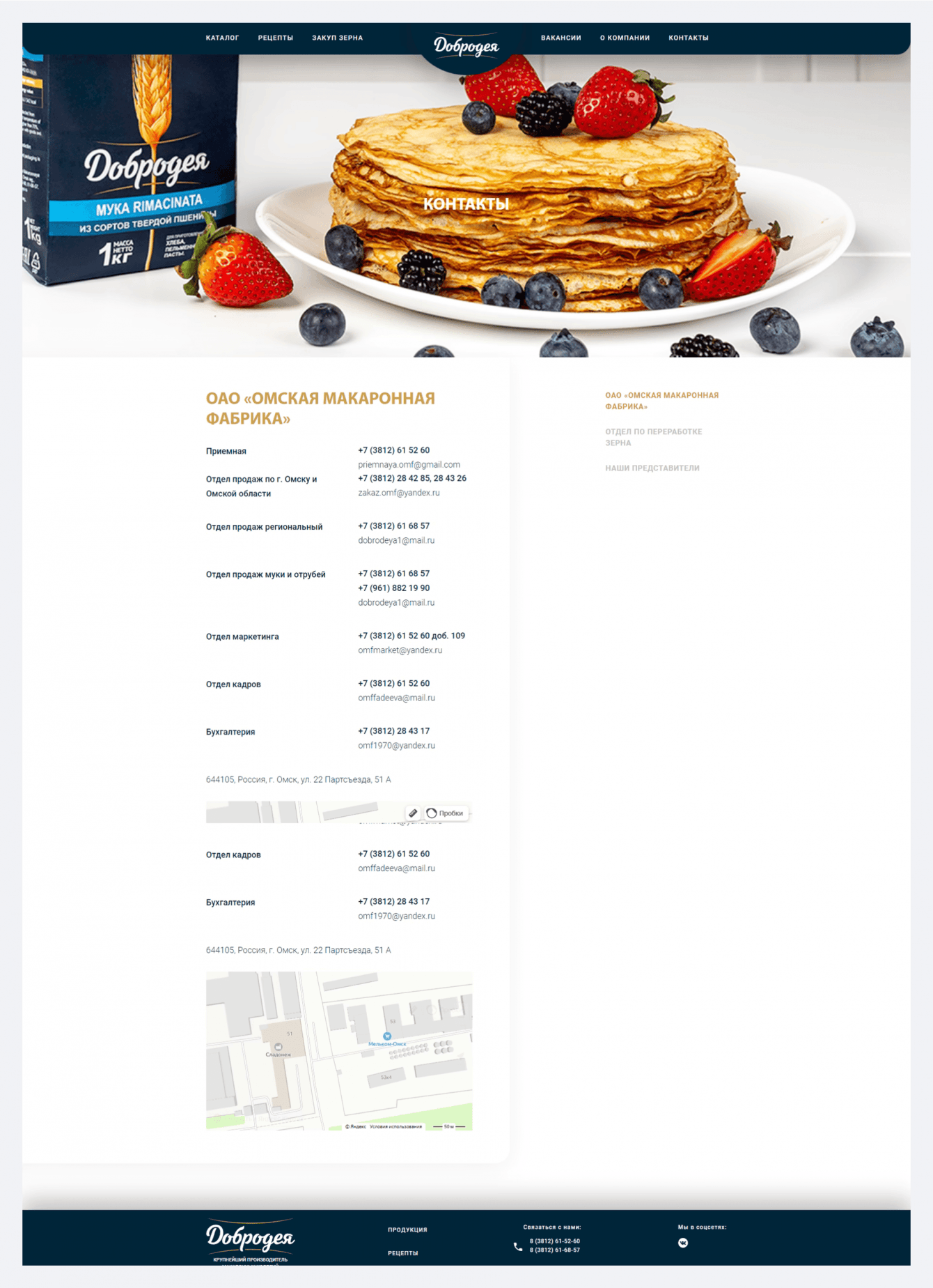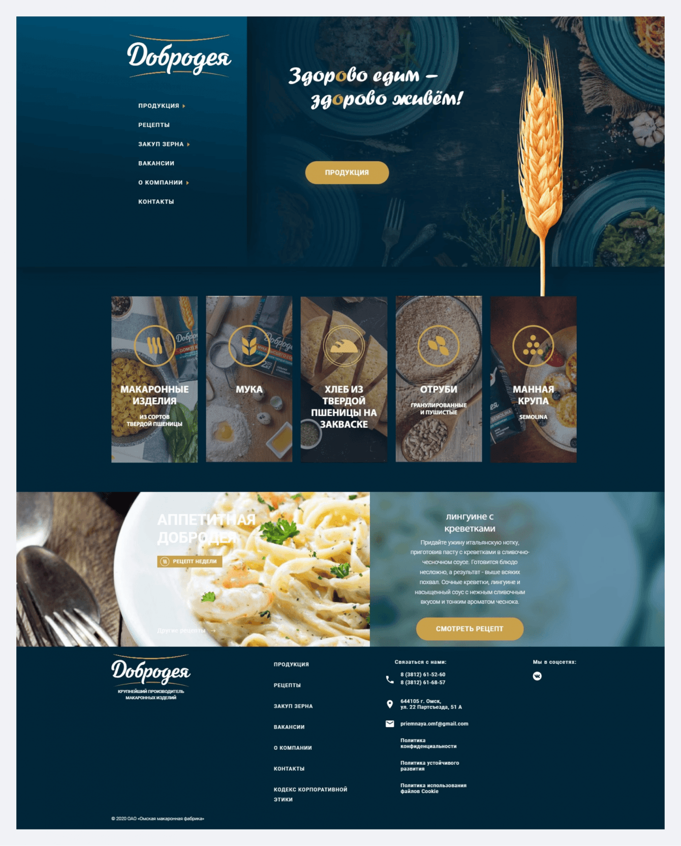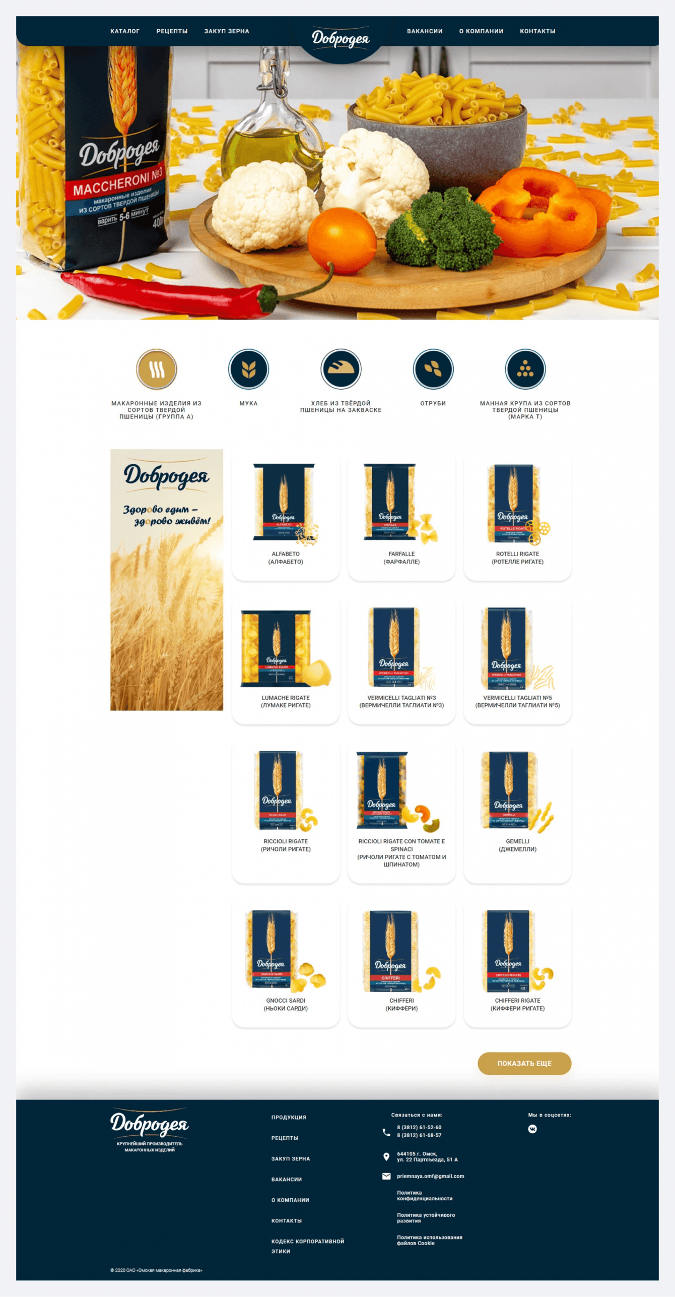 Отрисовали новые страницы для разделов продукции, рецептов, закупки зерна и вакансиях, чтобы бренд мог эффективно работать с разными аудиториями — покупателями, поставщиками и соискателями — на одном ресурсе.