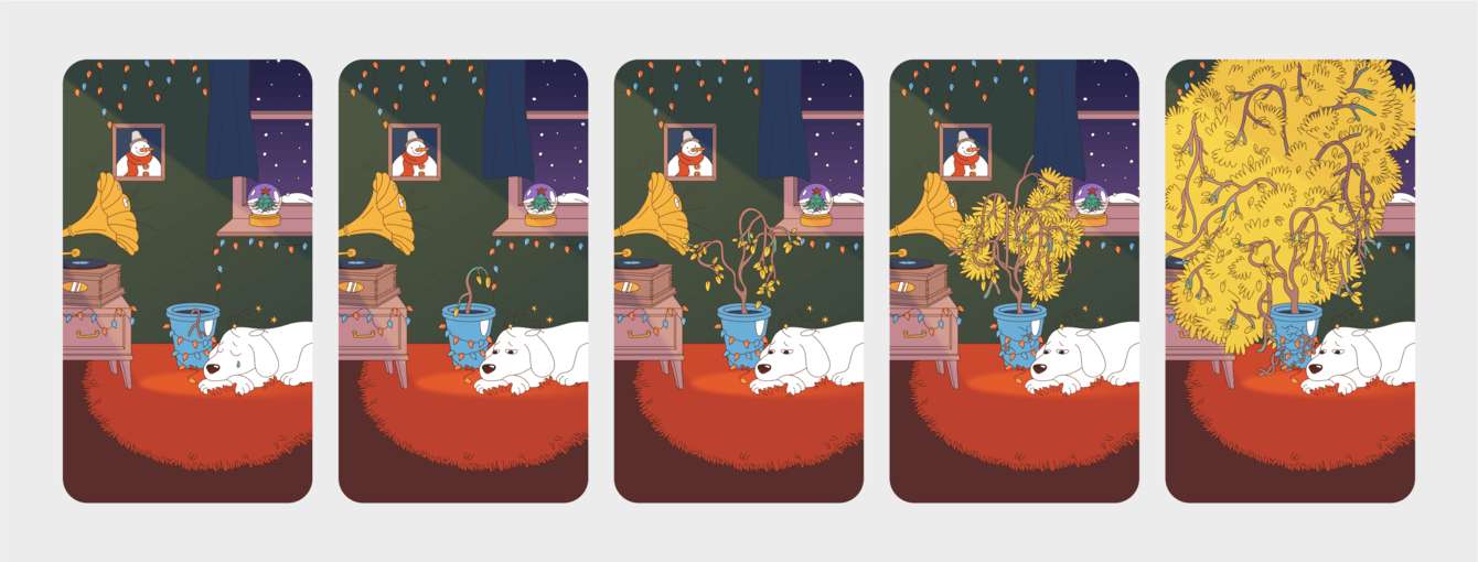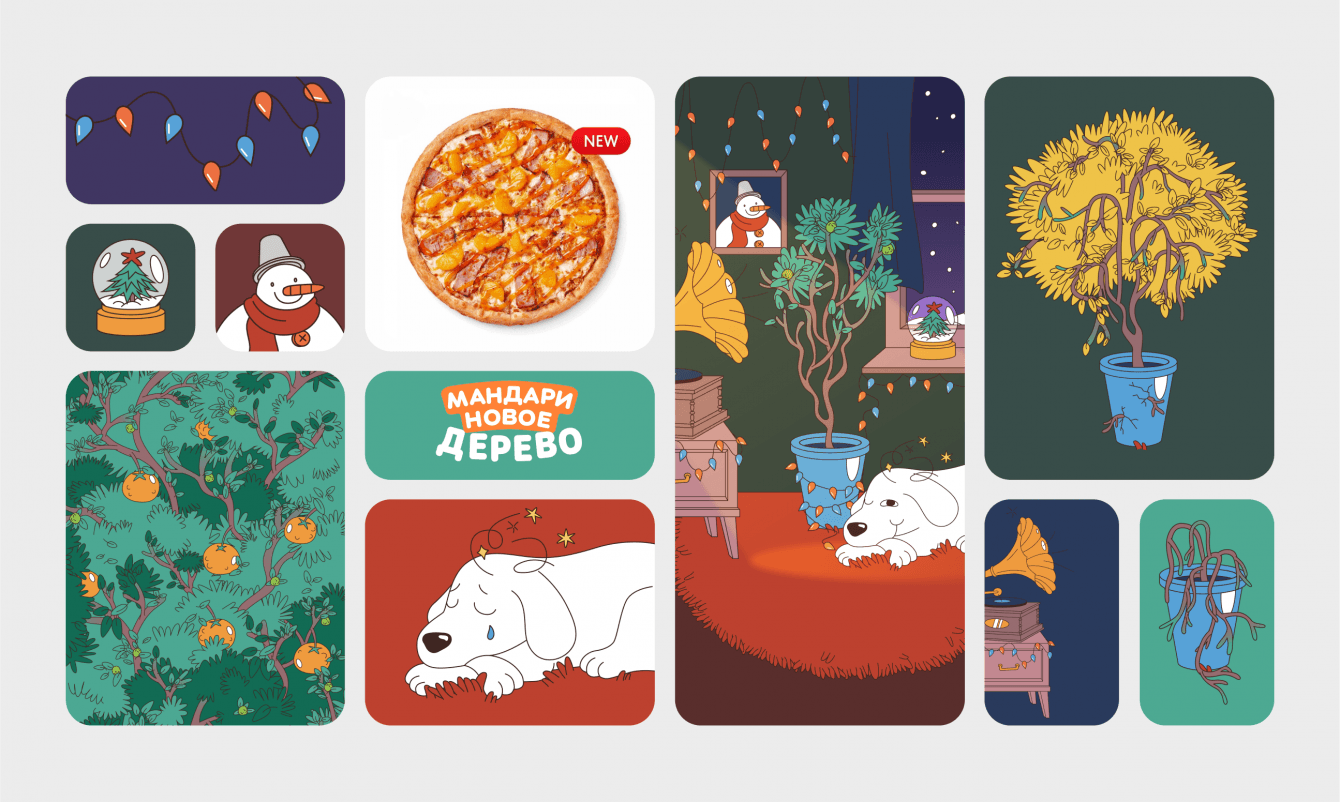 Игра анонсировала выход лимитированной пиццы с мандарином, индейкой и цитрусовым соусом. Главным героем игры на платформе VK стало мандариновое дерево. Наша команда разработала персонажей, фоны, графику для пяти игр на различных платформ.