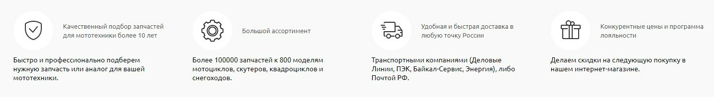 1. Проанализировали сферу продажи мотозапчастей в России и сформулировали для продвижения сайта: особенности и точки роста, целевую аудиторию и как она покупает в интернете, преимущества компании.