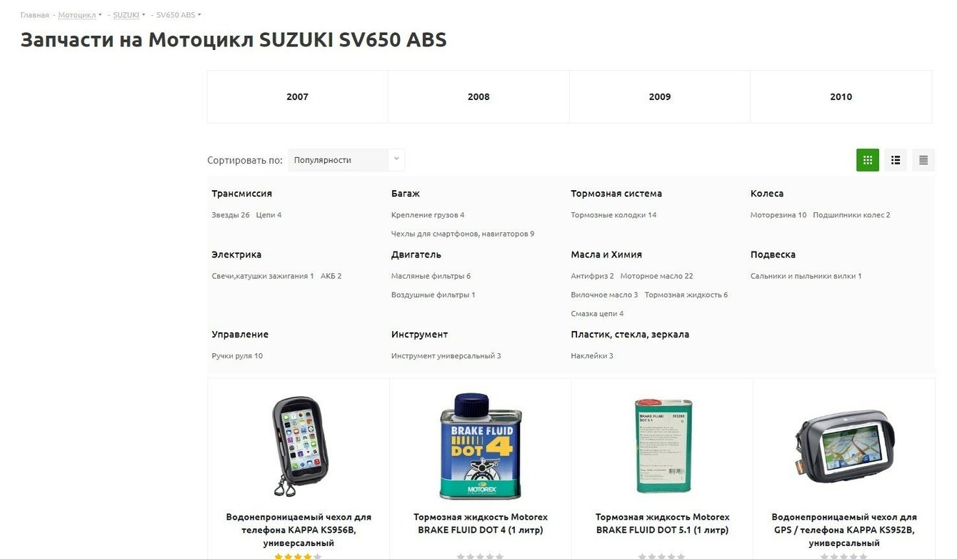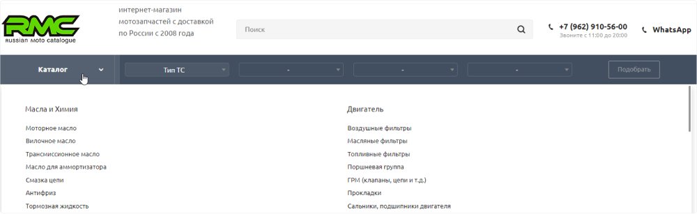 3. Большая база запчастей, в которой отмечена их применимость к модели мотоцикла — это большая редкость. Заказчиком была проделана огромная работа по сбору и внесению данных на сайт. Грамотное использование этих данных привело к отличным результатам!