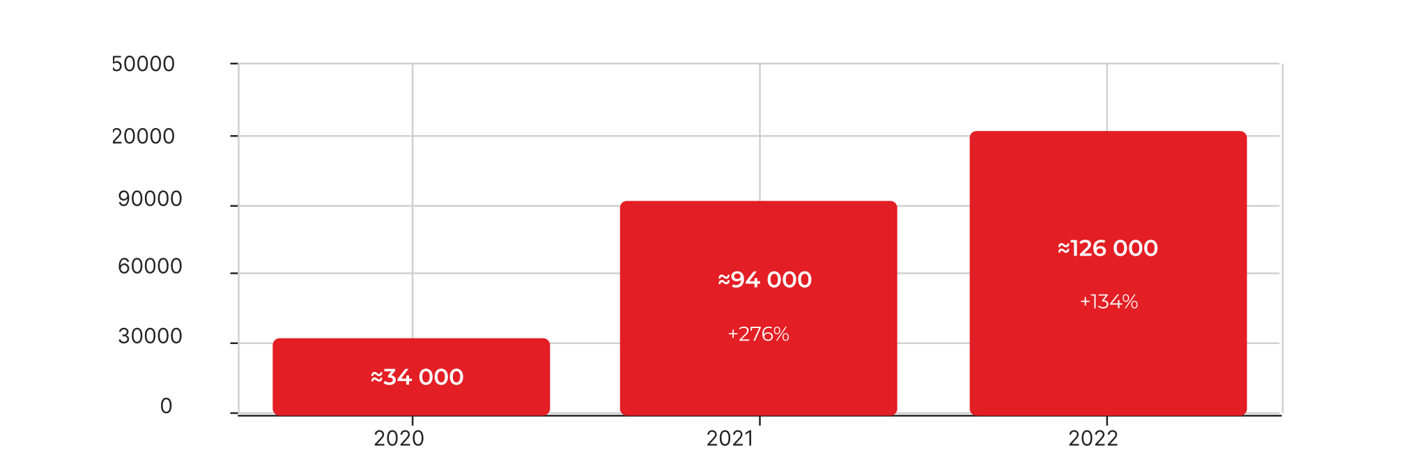 1. Сводная статистика по визитам из поисковых систем в разрезе 2020, 2021, 2022 годов (График № 4). Каждый год поисковый трафик растет.