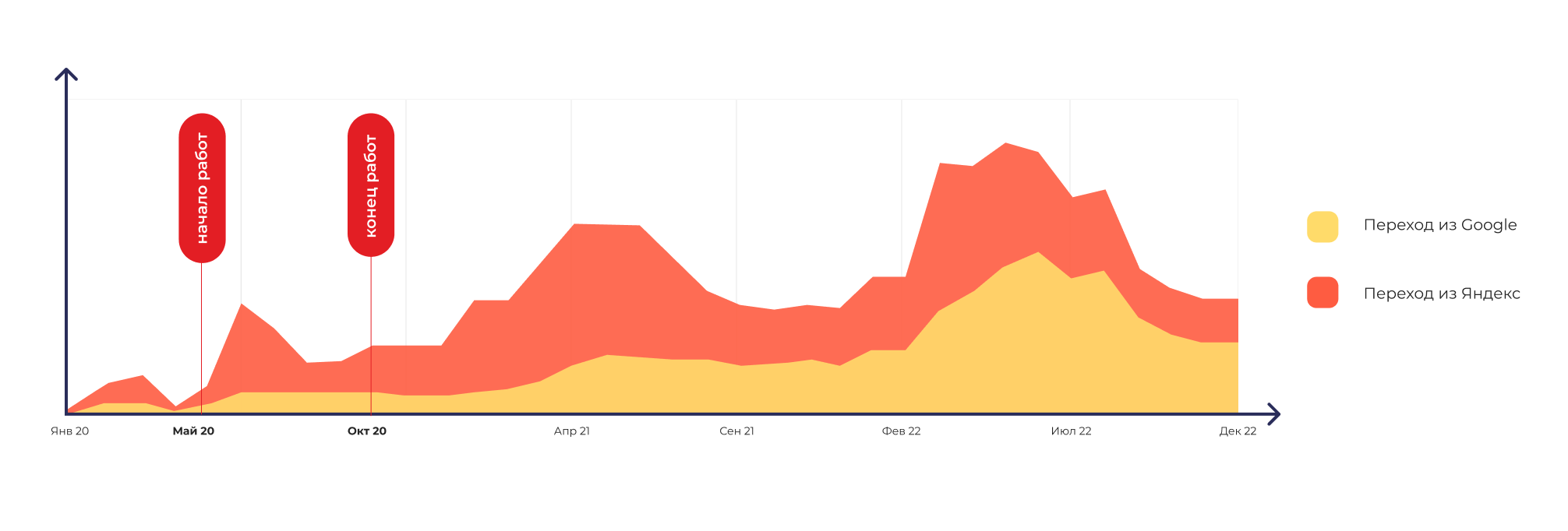 График № 6. Поисковый трафик из Яндекса и Google 2020−2022: