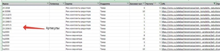 — продвинули страницы товаров по артикулам запчастей (Скриншот № 4). Выбирали самые частотные артикулы и мониторили по ним позиции сайта в поисковых системах.