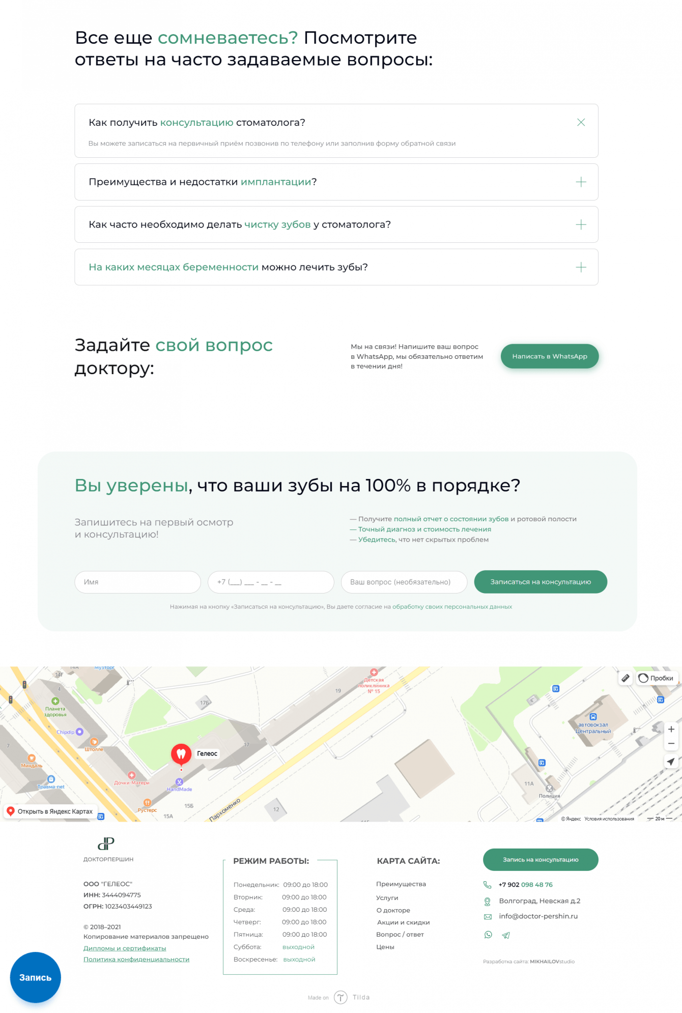 Врач хотел сделать сайт для рекламы, показать огромный стаж, виды услуг от ремонта зуба до имплантации, показать удобство для пользователя