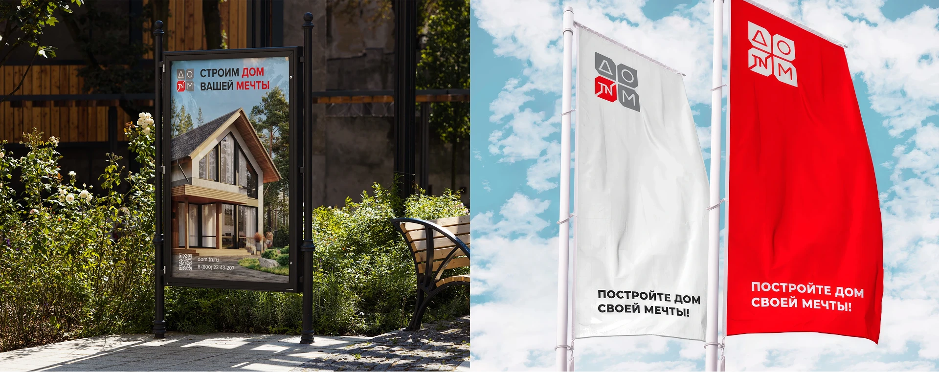 Адаптивные шаблоны: готовые решения для сайта и соцсетей, полиграфии, мерча и, что критически важно, — архитектурной интеграции (стройплощадки, оформление объектов, навигации).