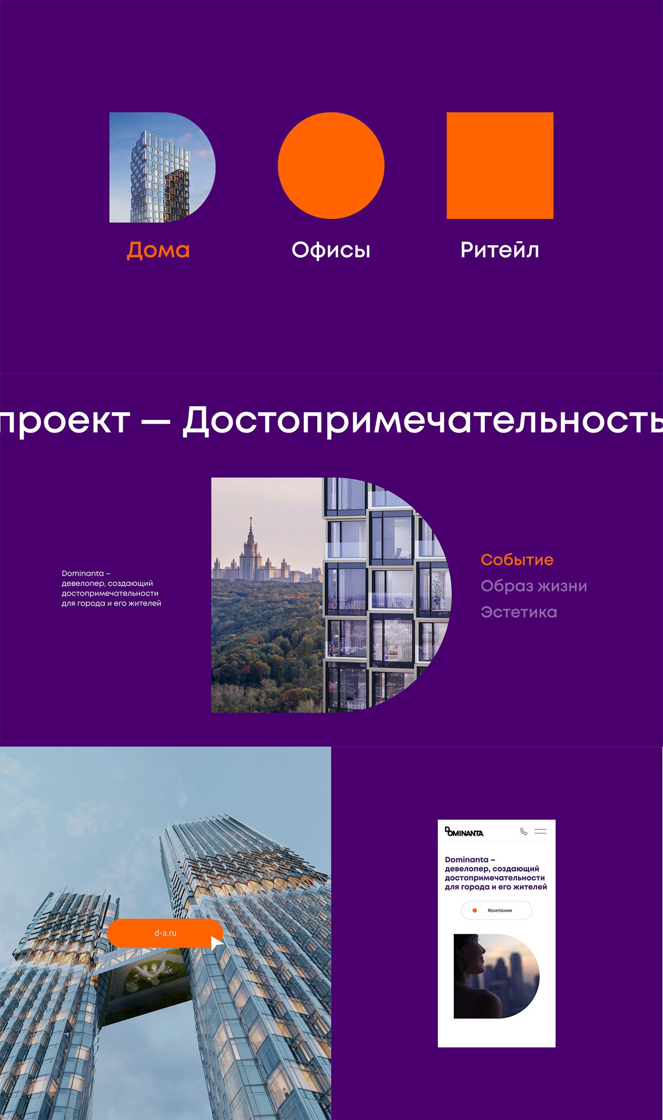 Dominanta – девелопер, создающий достопримечательности для города и его жителей. Интегрированный сайт девелопера и проектов объединяет страницы преимуществ проектов и выбор лотов в едином цифровом пространстве. Сайт выделяется следи своих строгих и однотипных конкурентов эффектными графическими и анимационными решениями, поддерживая образ компании - новатора