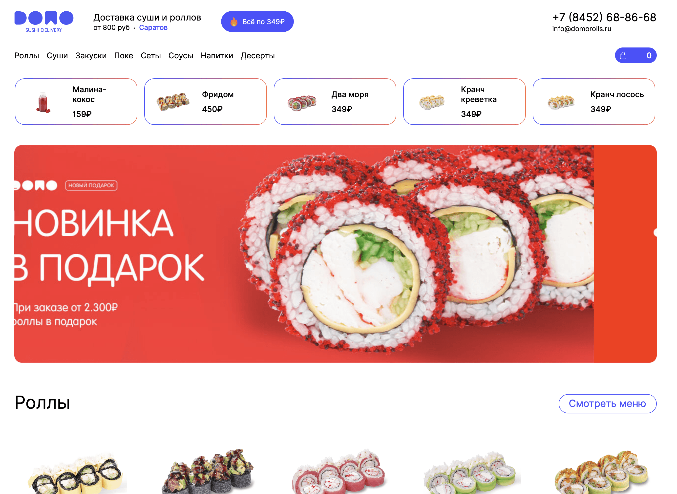 Создать мобильное приложение и сайт для сети ресторанов Domo Rolls, которое упростит процесс заказа еды и сделает его удобным для пользователей.